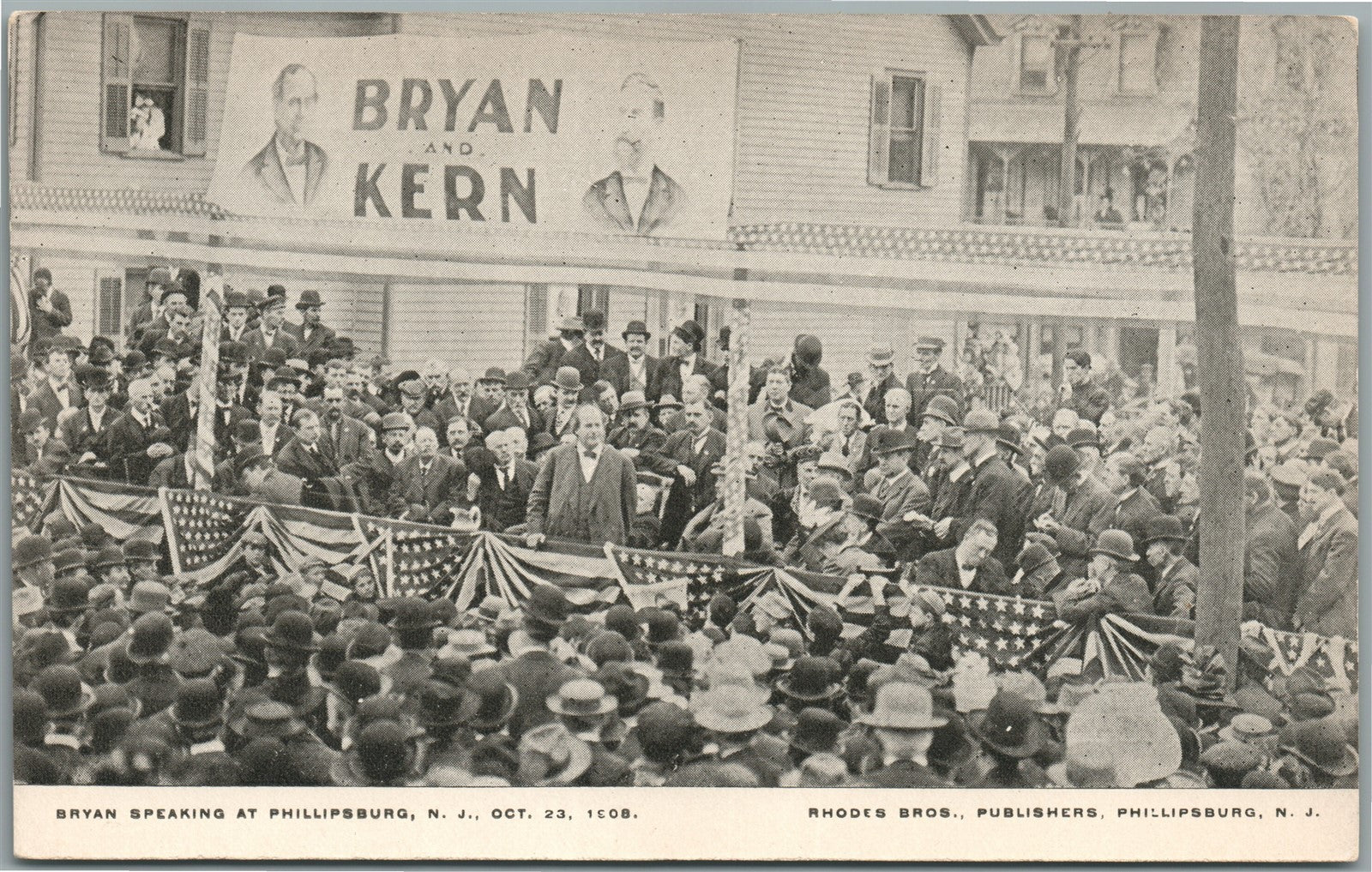 PHILLIPSBURG NJ BRYAN SPEAKING 1908 ELECTION ANTIQUE POSTCARD