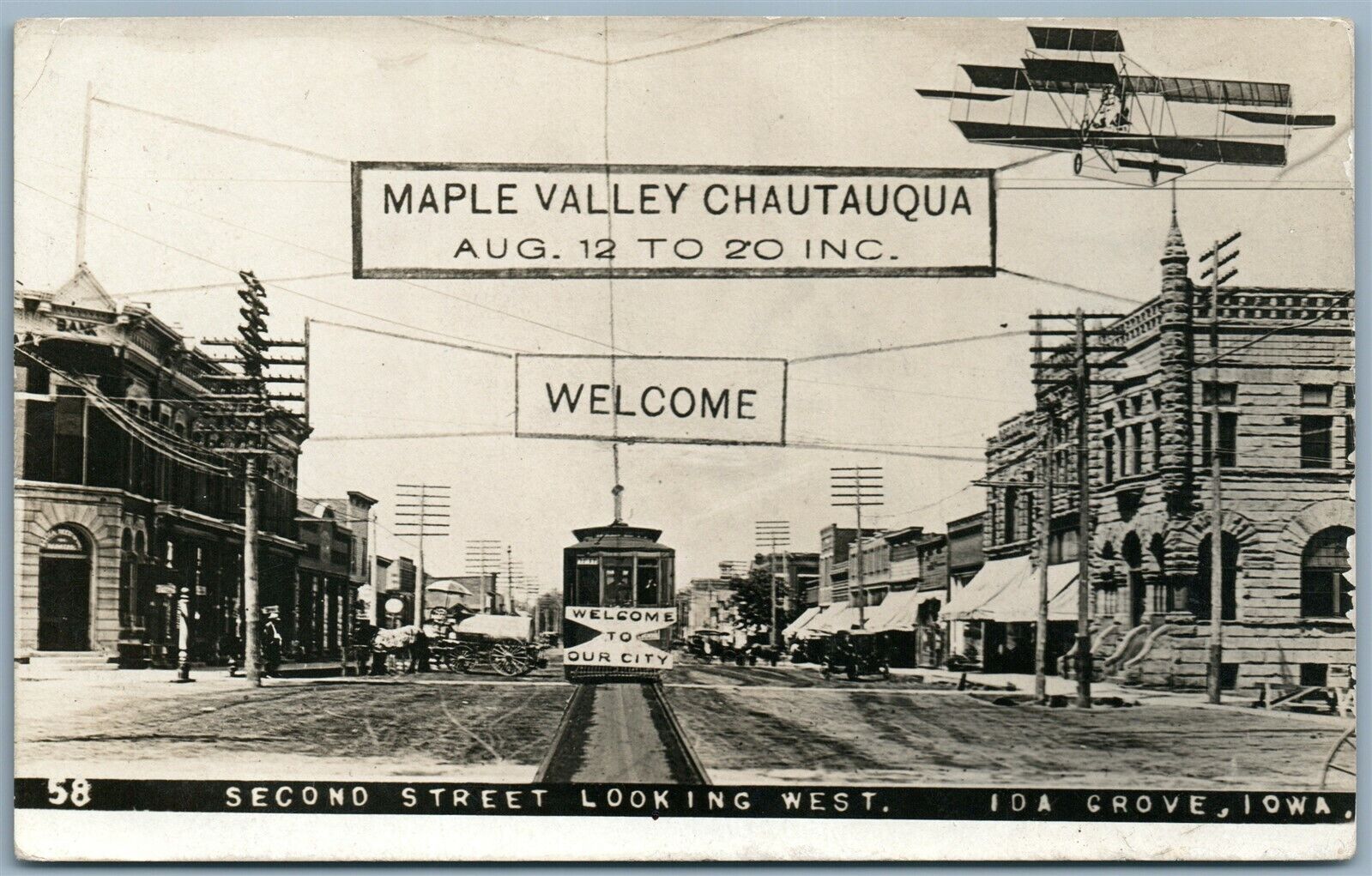 PHOTOMONTAGE IDA GROVE IA AIRPLANE ANTIQUE REAL PHOTO RPPC AVIATION CHAUTAUQUA