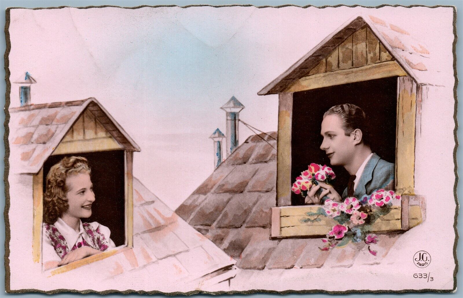PHOTOMONTAGE ROMANTIC COUPLE ANTIQUE REAL PHOTO POSTCARD RPPC