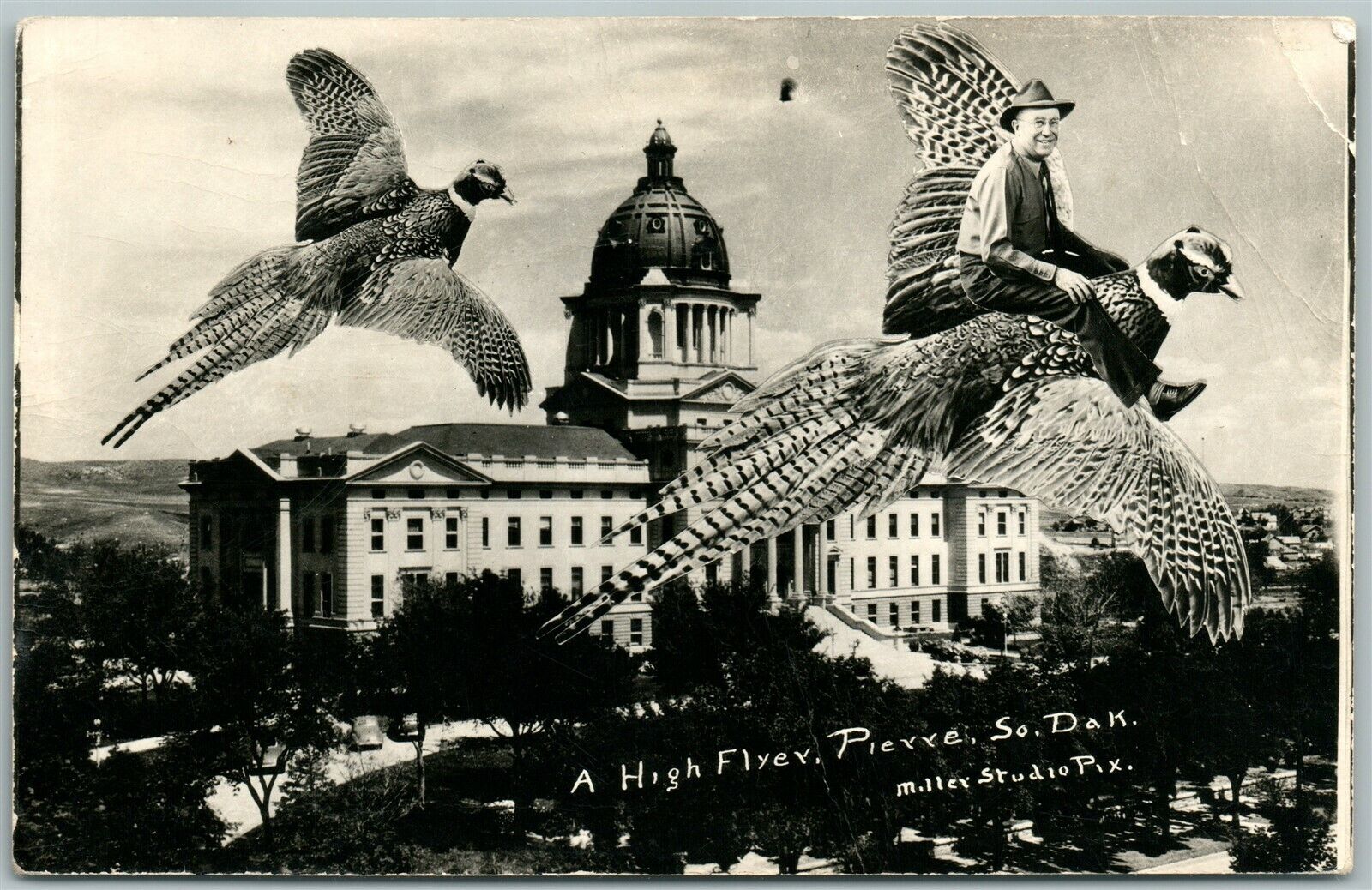 PIERRE S.DAKOTA PHEASANT FLYER VINTAGE REAL PHOTO POSTCARD RPPC collage MONTAGE