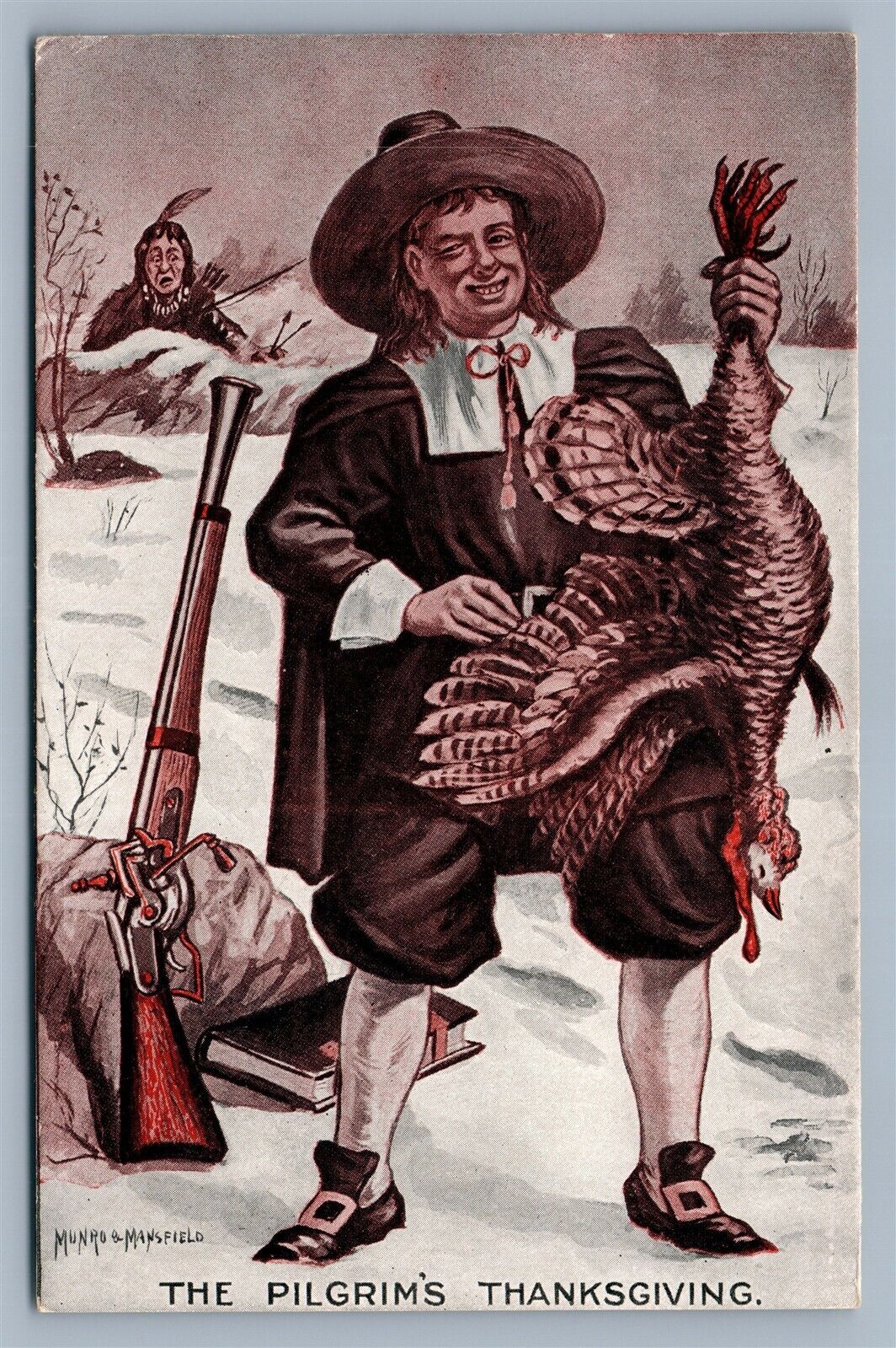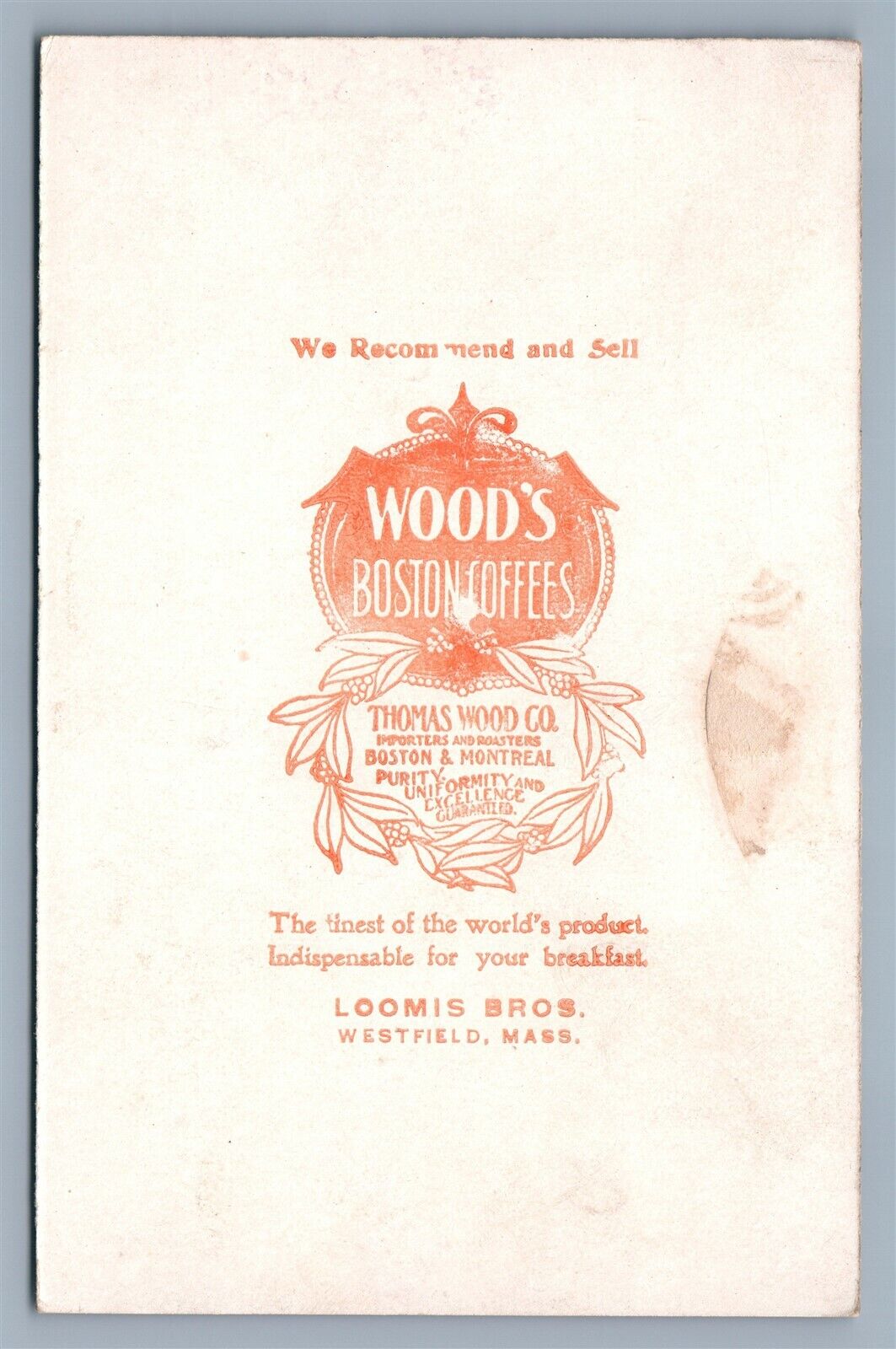 PILGRIM'S THANKSGIVING ANTIQUE BOSTON COFFEE ADVERTISING POSTCARD ARTIST SIGNED