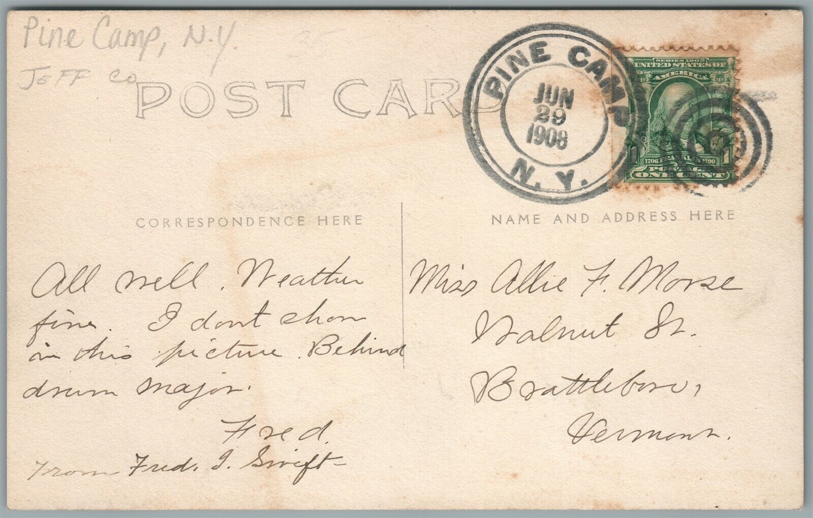 PINE CAMP NY 1908 MILITARY MUSIC BAND ANTIQUE REAL PHOTO POSTCARD RPPC
