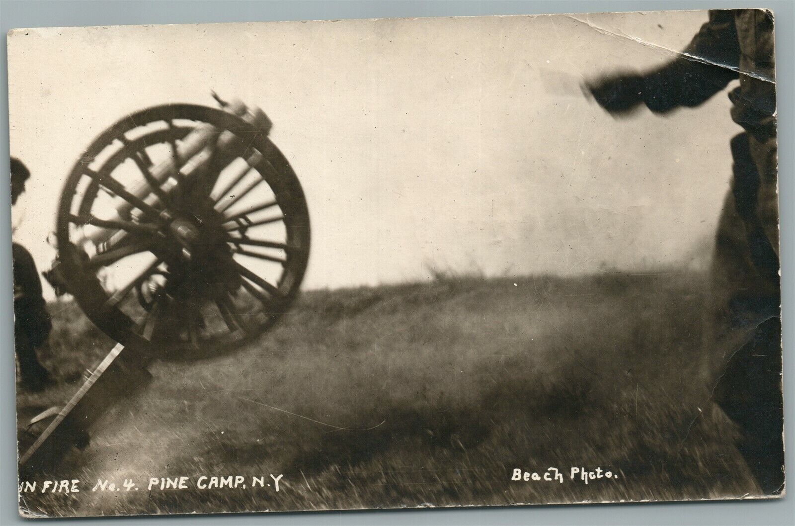PINE CAMP NY IN FIRE MILITARY ARTILLERY ANTIQUE REAL PHOTO POSTCARD RPPC