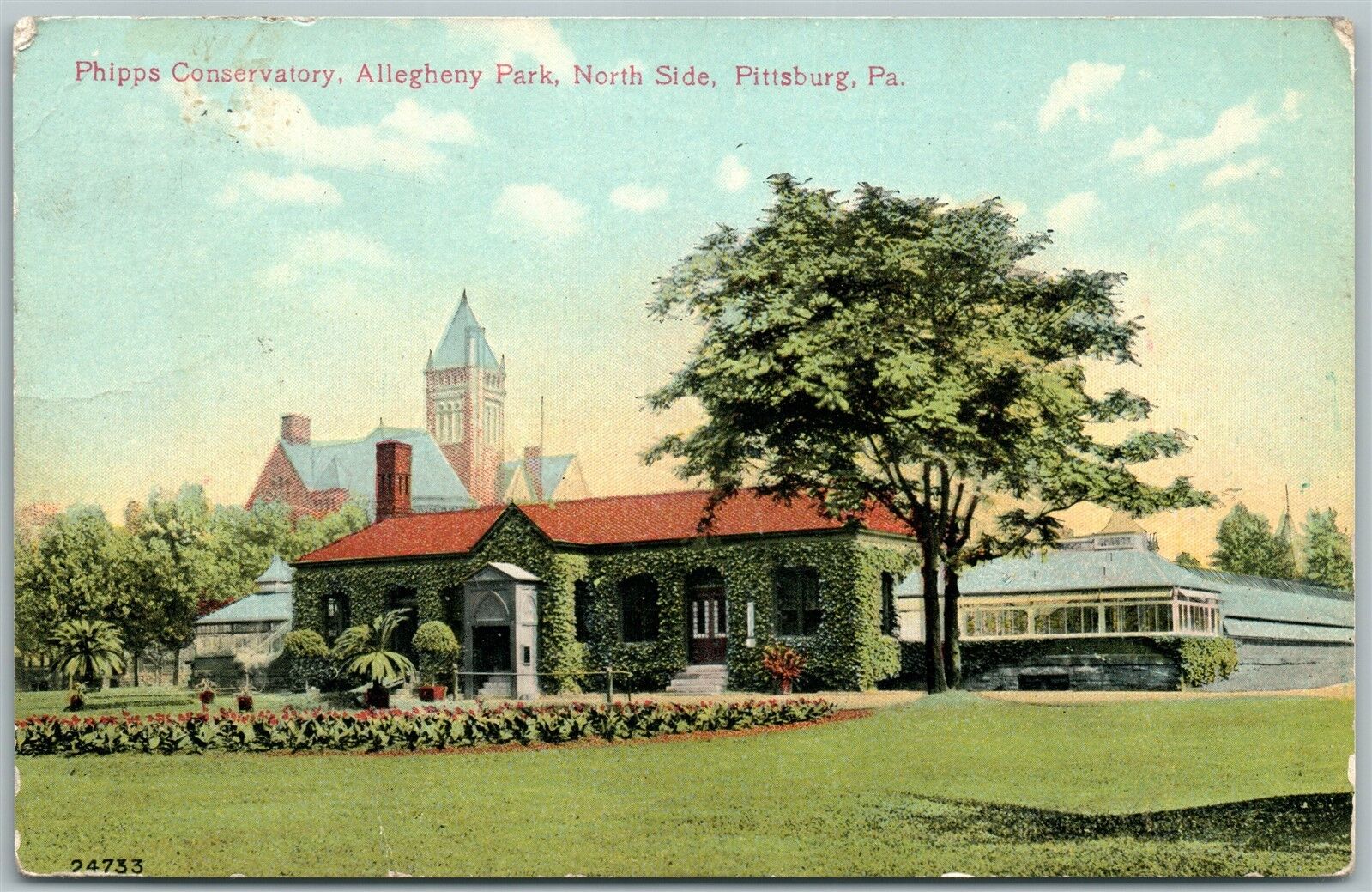 PITTSBURG PA PHIPPS CONSERVATORY ALLEGHENY PARK 1914 ANTIQUE POSTCARD