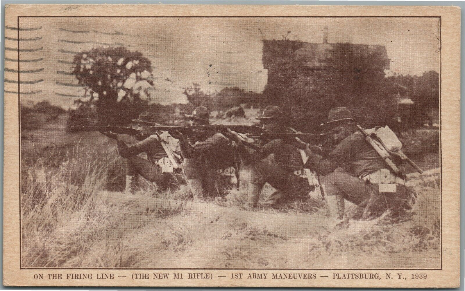 PLATTSBURG NY US ARMY FIRING LINE MILITARY MANEUVERES WWII ERA ANTIQUE POSTCARD