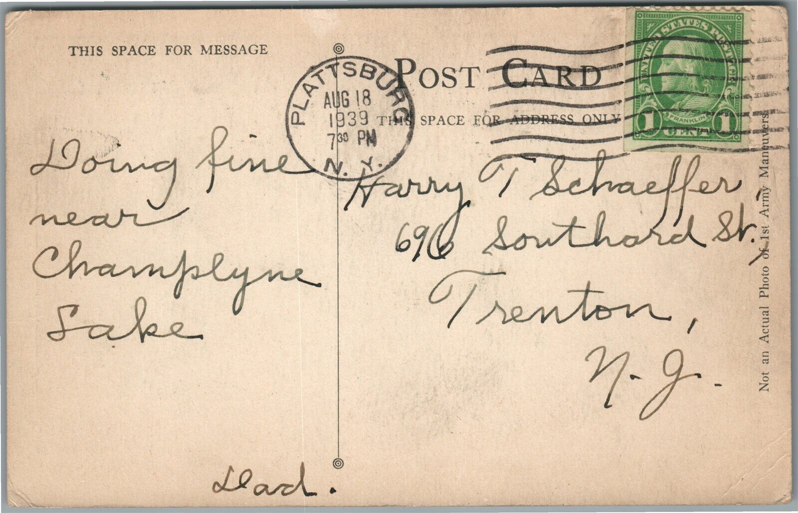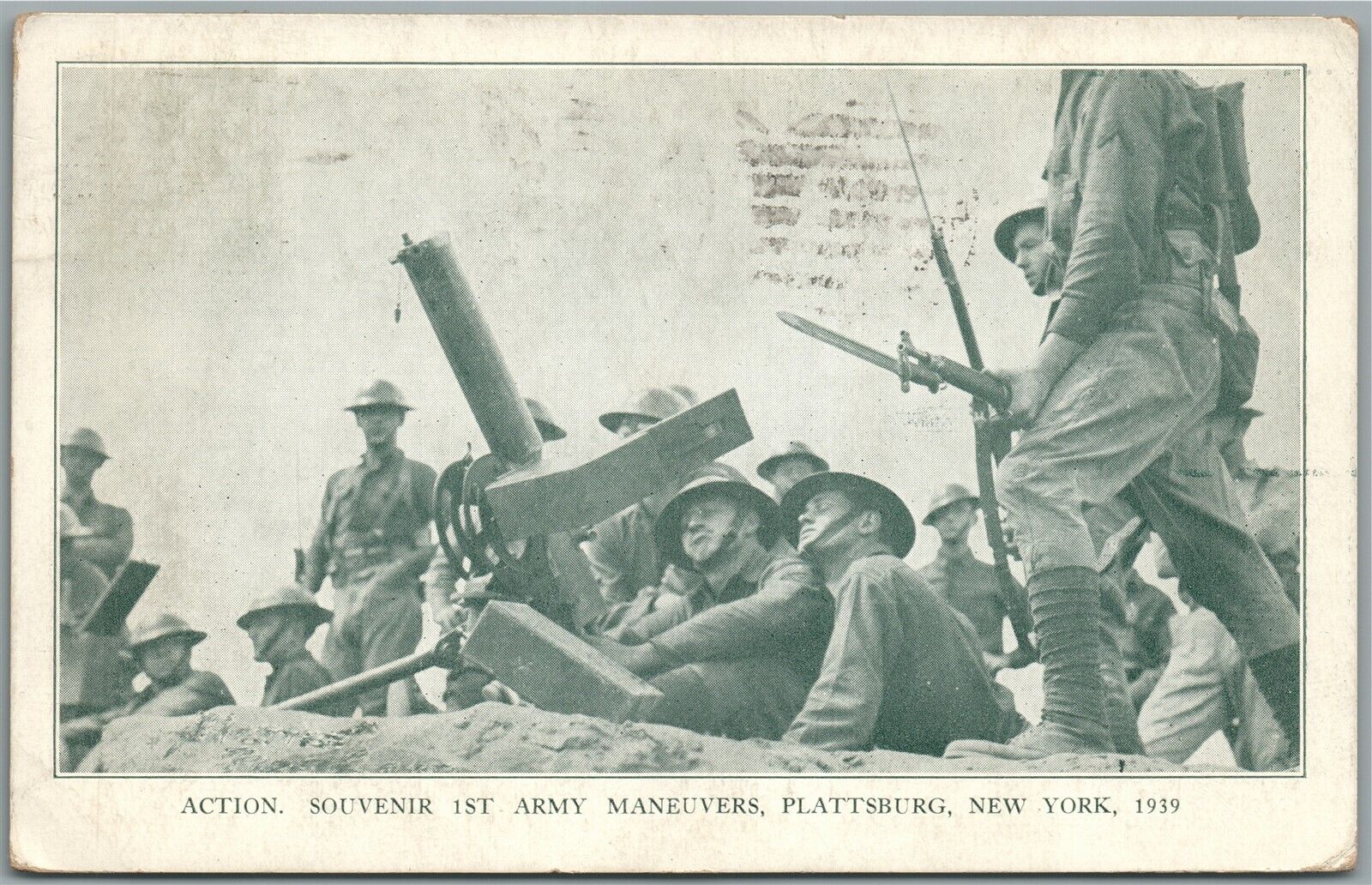 PLATTSBURG NY US ARMY MILITARY MANEUVERES WWII ERA 1939 ANTIQUE POSTCARD