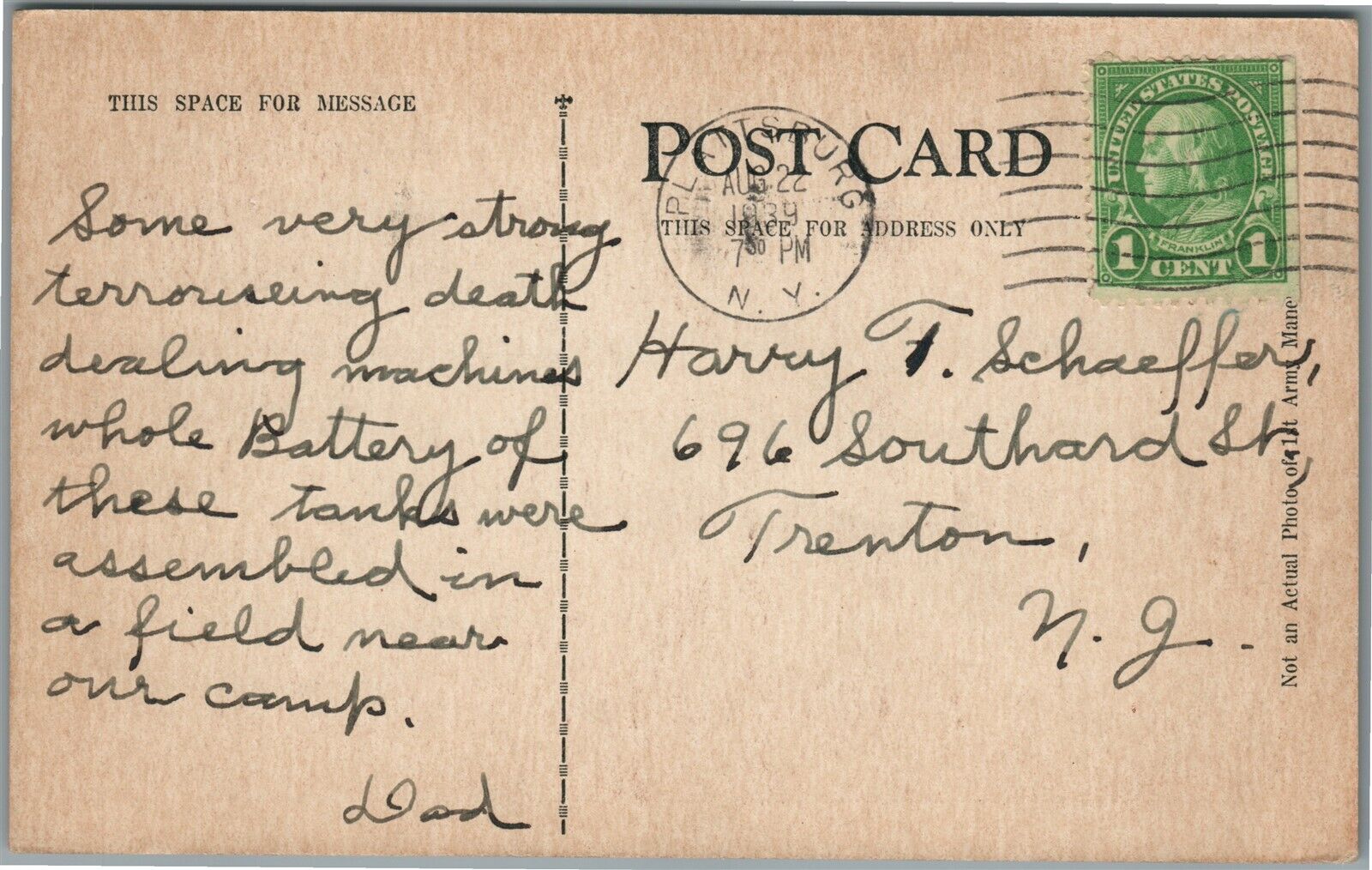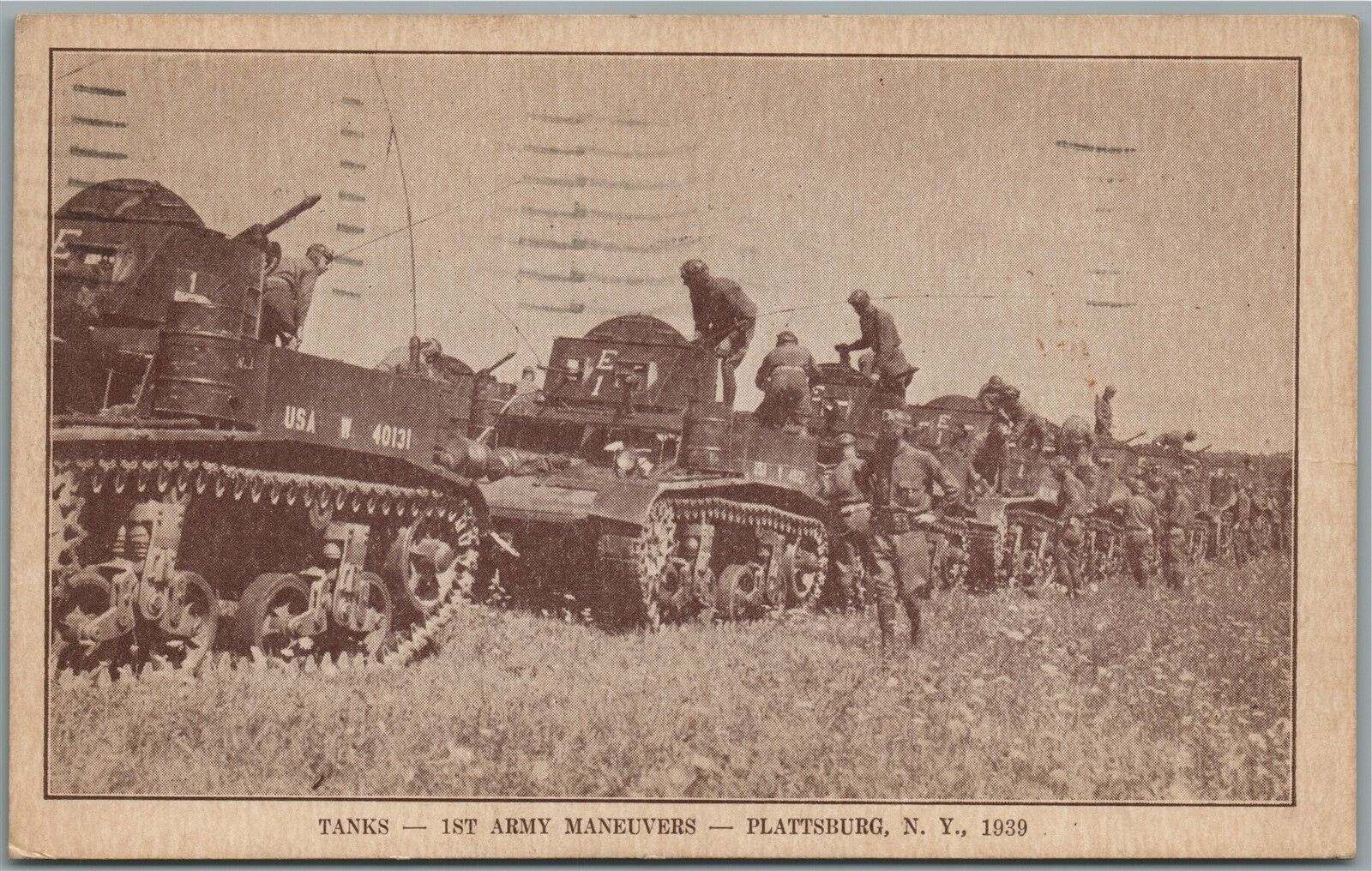 PLATTSBURG NY US ARMY TANKS MILITARY MANEUVERES WWII ERA 1939 ANTIQUE POSTCARD