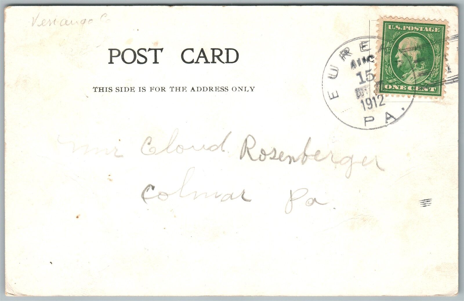 PLEASANTVILLE PA REFORMED CHURCH 1912 UNDIVIDED ANTIQUE POSTCARD