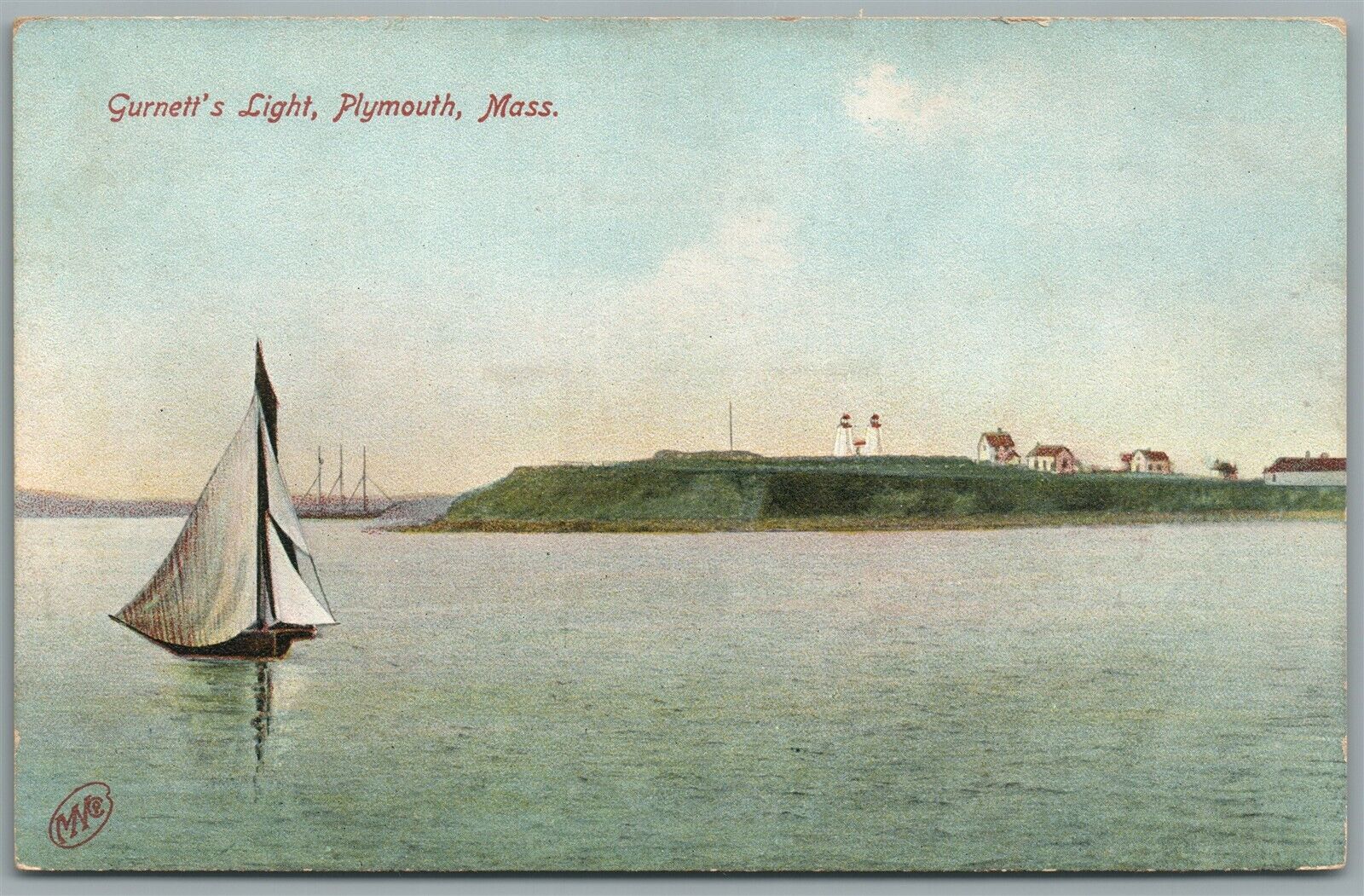 PLYMOUTH MA GURNETT'S LIGHT ANTIQUE POSTCARD