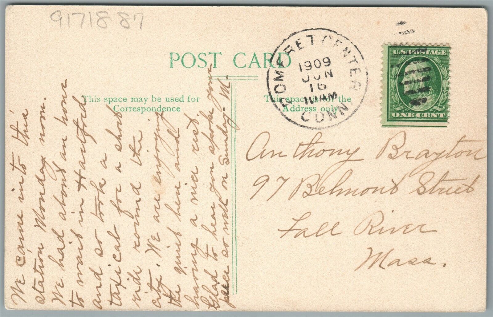 POMFRET CT RAILROAD STATION RAILWAY TRAIN DEPOT 1909 ANTIQUE POSTCARD