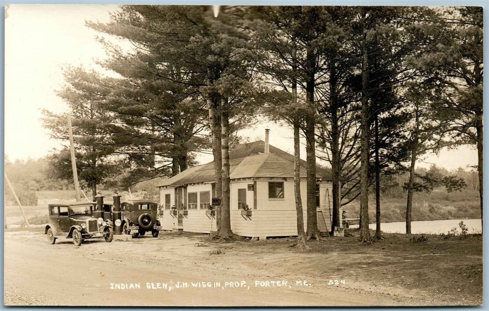 PORTER ME INDIAN GLEN GAS STATION AUTOMOBILES ANTIQUE REAL PHOTO POSTCARD RPPC