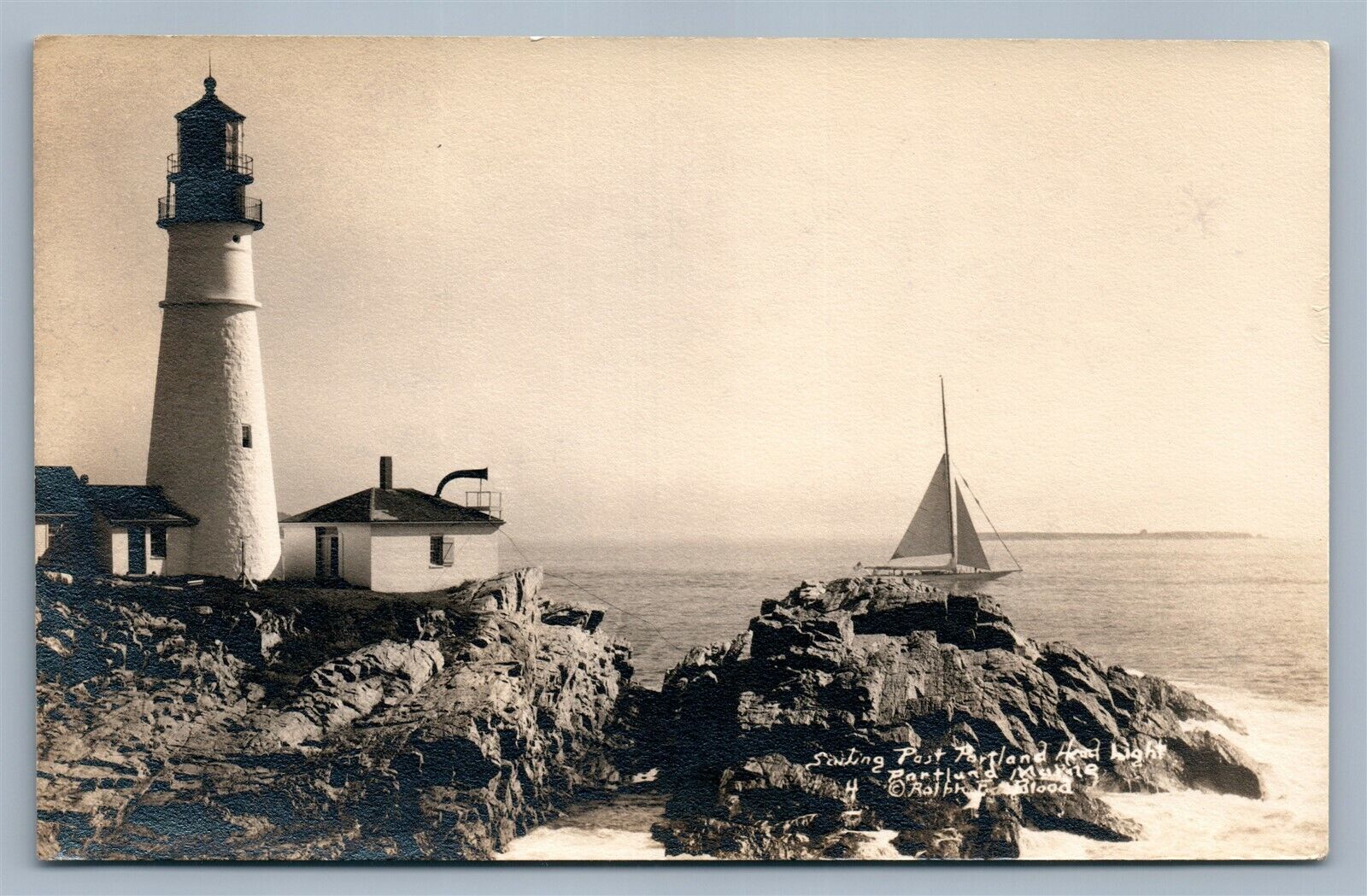 PORTLAND HEAD ME LIGHTHOUSE VINTAGE REAL PHOTO POSTCARD RPPC