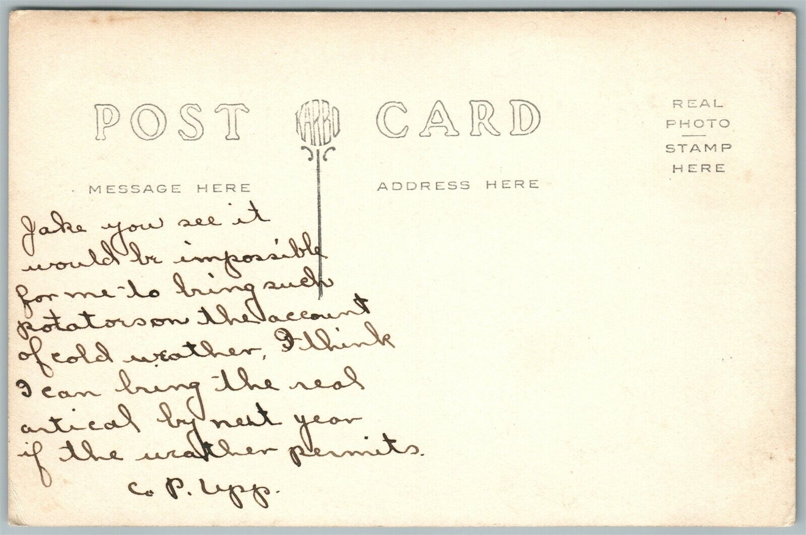 POTATOES on RAILWAY CAR EXAGGERATED ANTIQUE REAL PHOTO POSTCARD RPPC railroad