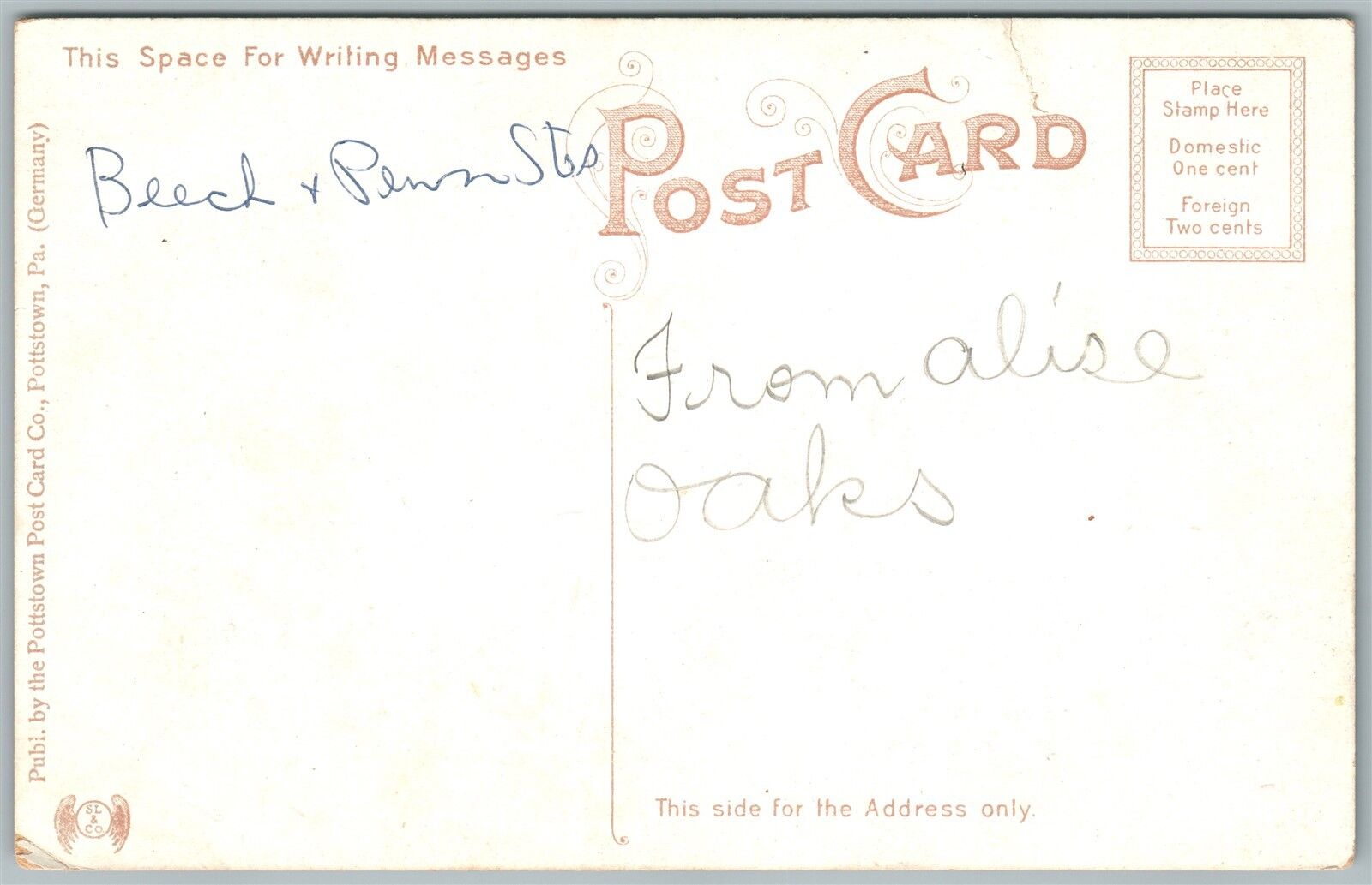 POTTSTOWN PA HIGH SCHOOL BUILDING ANTIQUE POSTCARD