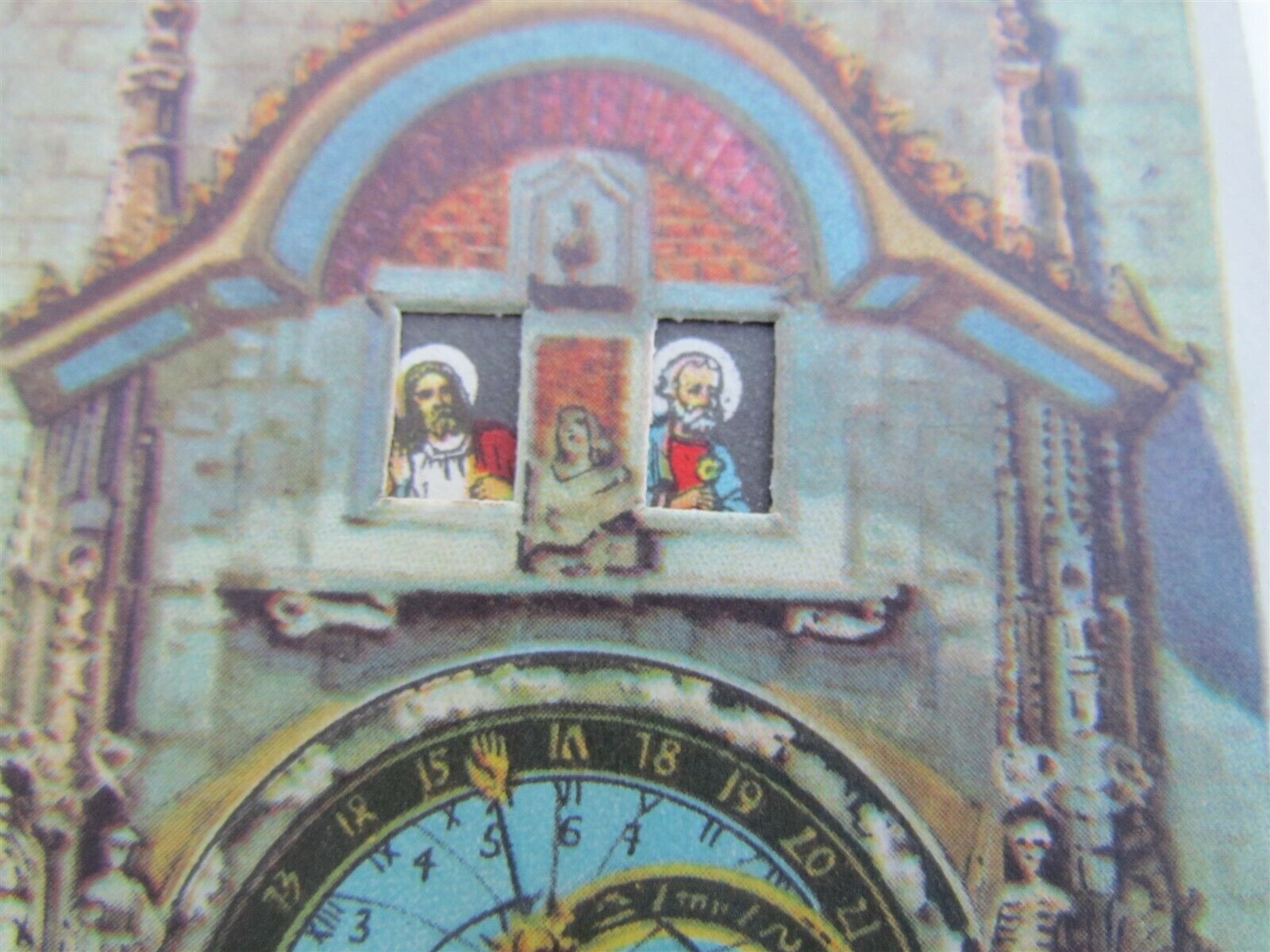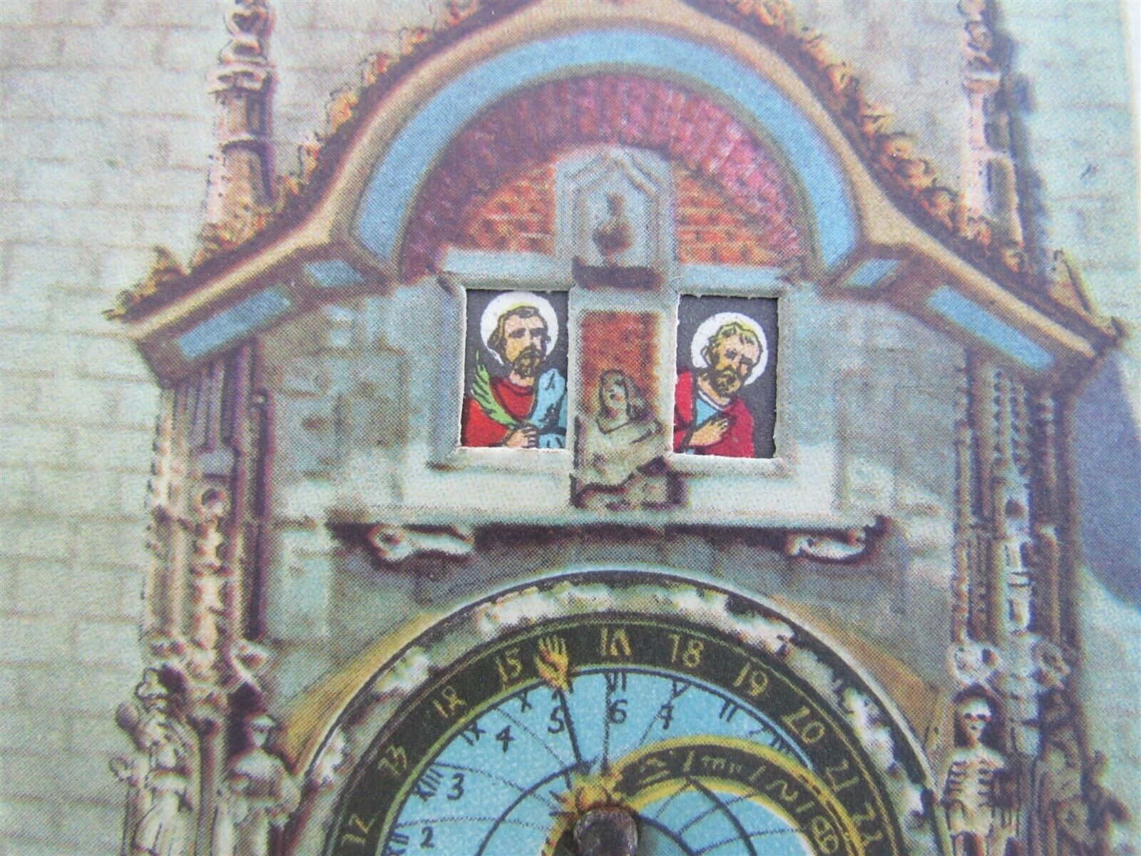 PRAGUE ASTRONOMICAL CLOCK MECHANICAL ANTIQUE CZECH POSTCARD w/ rotating figures