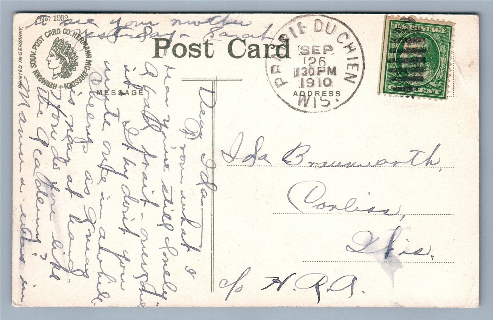 PRAIRIE DU CHIEN WI ST. MARY'S ACADEMY 1910 ANTIQUE POSTCARD w/ CORK CANCEL