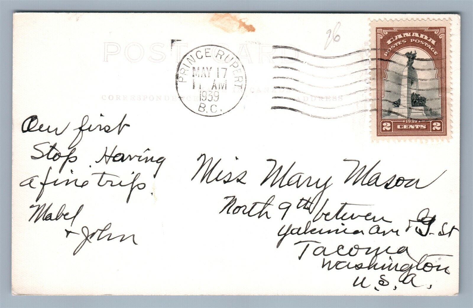 PRINCE RUPERT BC CANADA VINTAGE REAL PHOTO POSTCARD RPPC w/ STAMP
