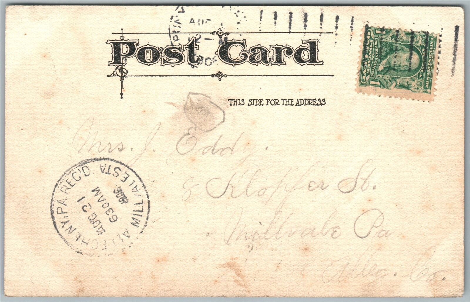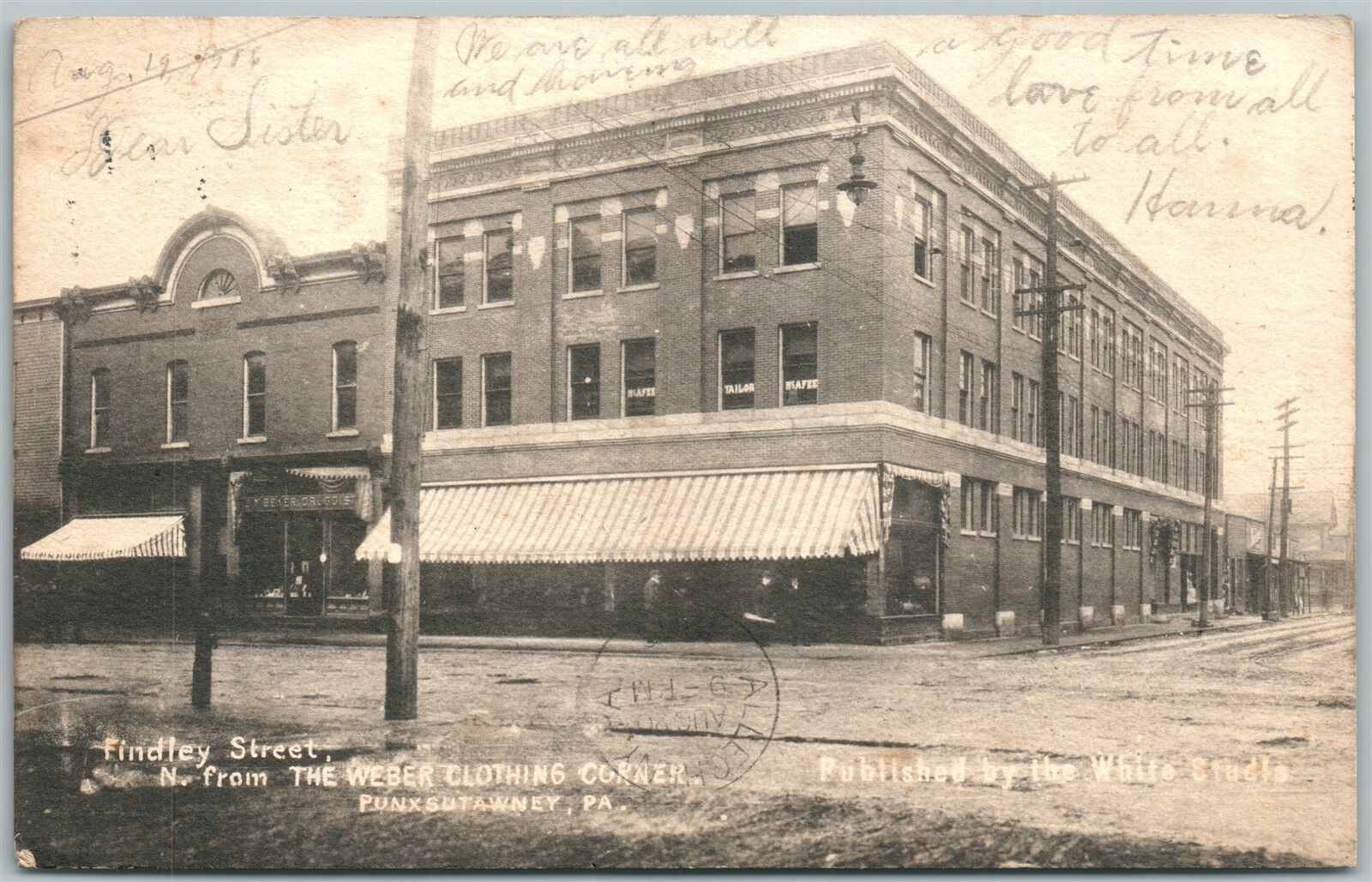 PUNXSUTAWNEY PA FINDLEY STREET from WEBER CLOTHING CORNER 1906 ANTIQUE POSTCARD