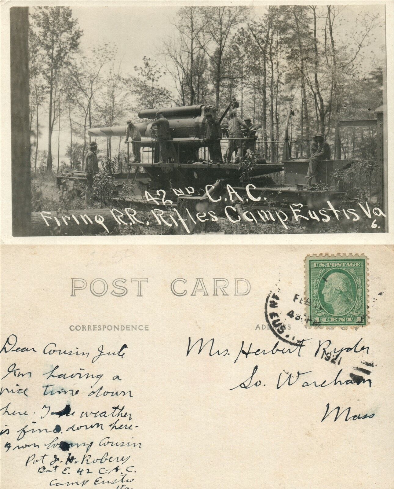 RAILROAD RIFLES FIRING 42nd C.A.C. FT. EUSTIS VINTAGE REAL PHOTO POSTCARD RPPC