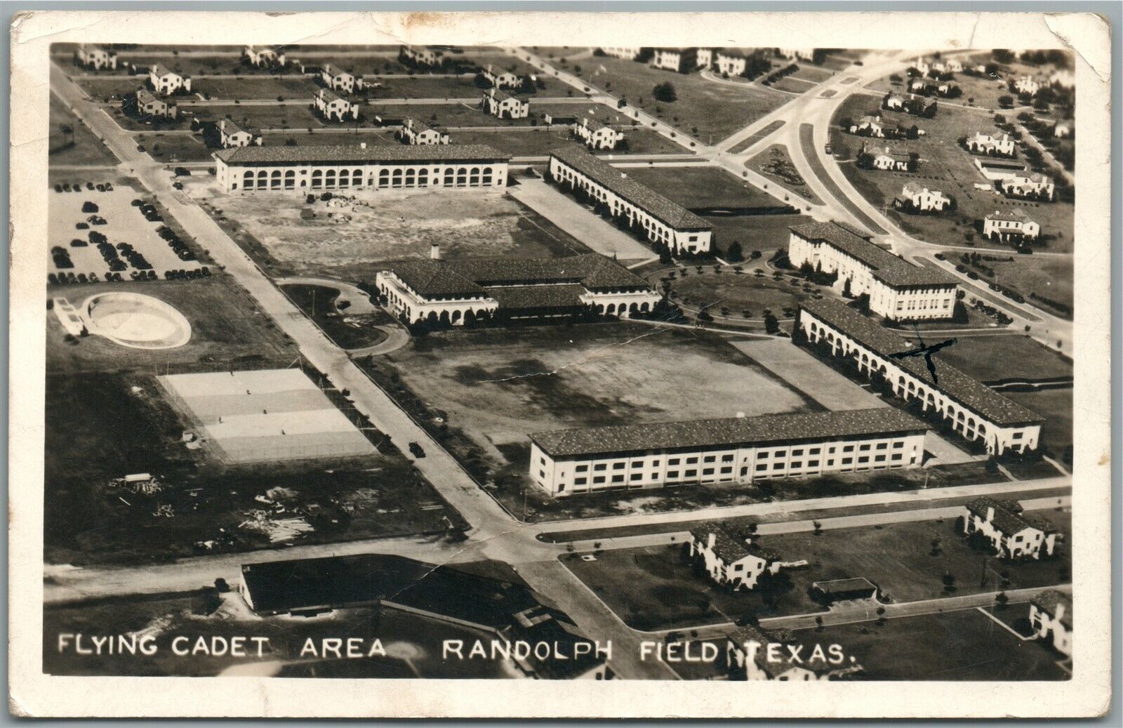 RANDOLPH FIELD TX FLYING CADET AREA VINTAGE REAL PHOTO POSTCARD RPPC