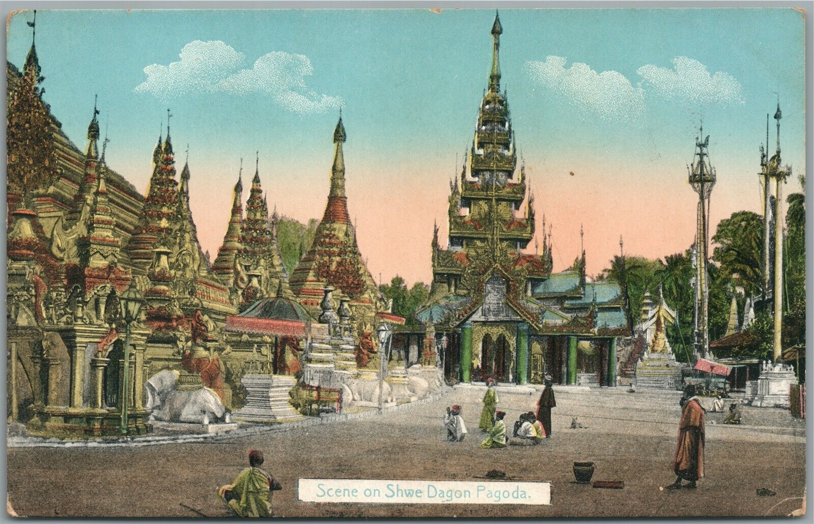 RANGOON BURMA YANGON SHWE DAGON PAGODA ANTIQUE POSTCARD