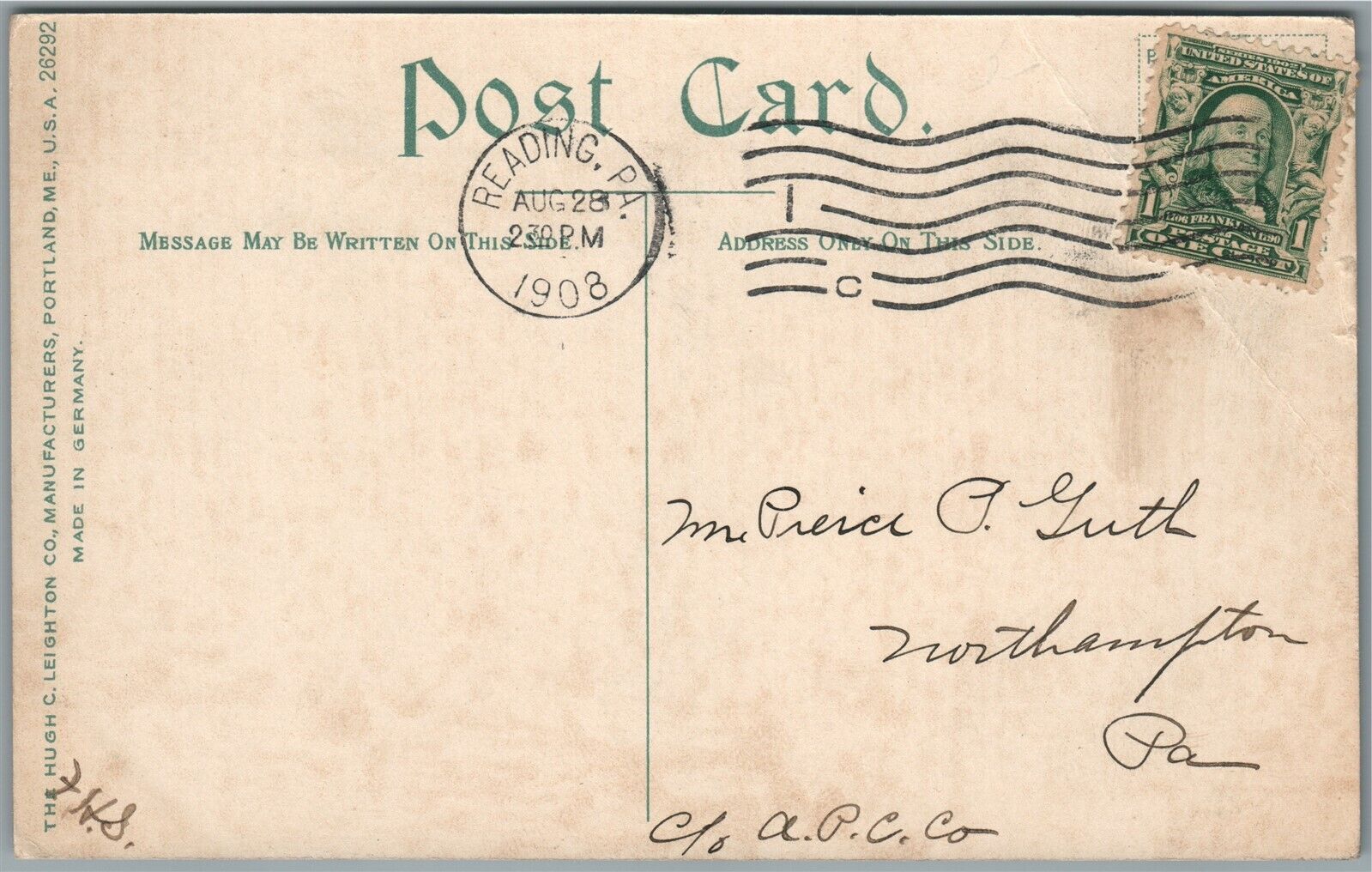 READING PA PENDORA PARK ANTIQUE POSTCARD