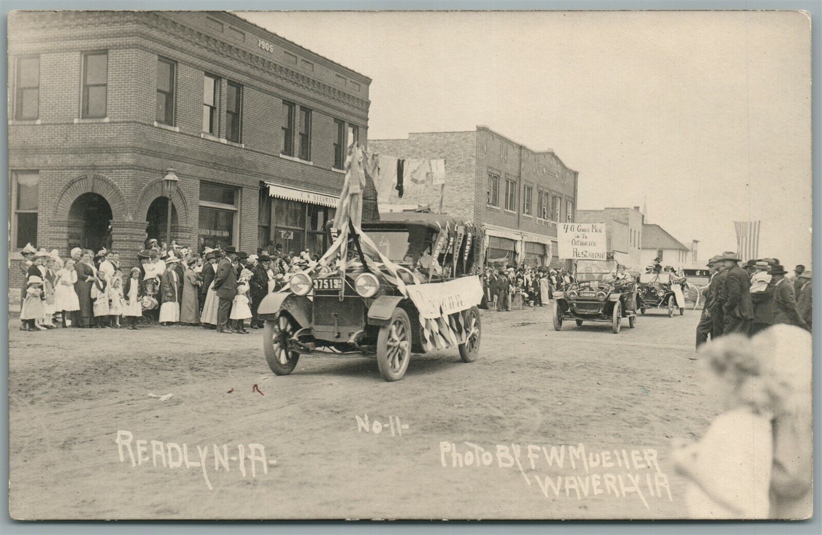 READLYN IA CAR PARADE ANTIQUE REAL PHOTO POSTCARD RPPC