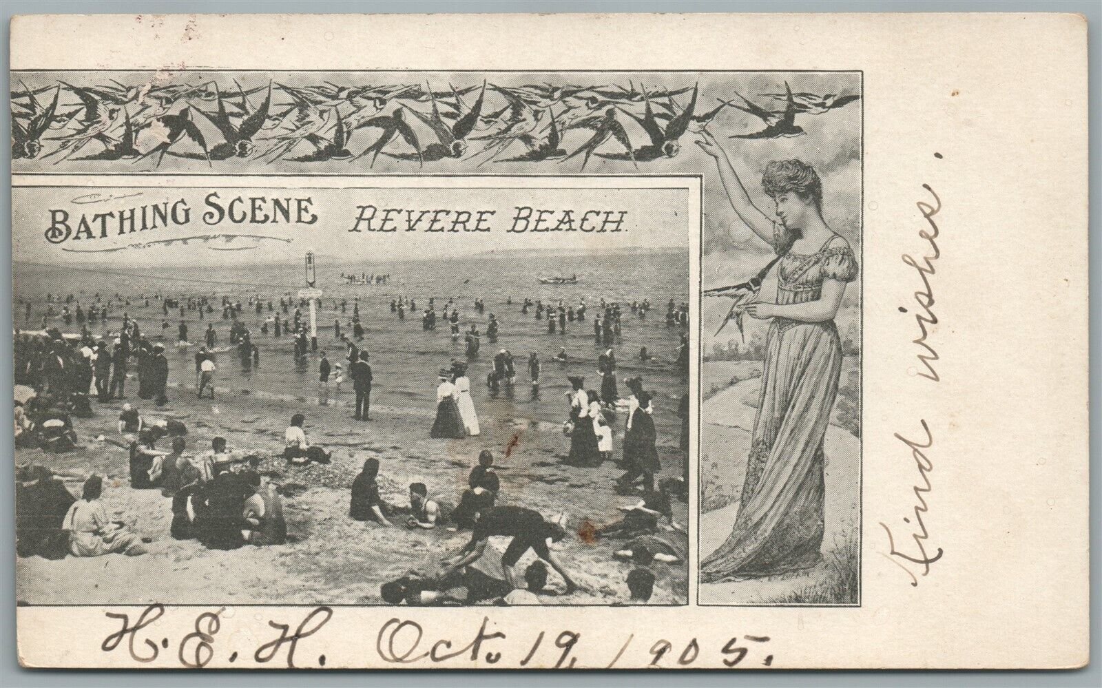 REVERE BEACH MA BATHING SCENE ANTIQUE POSTCARD