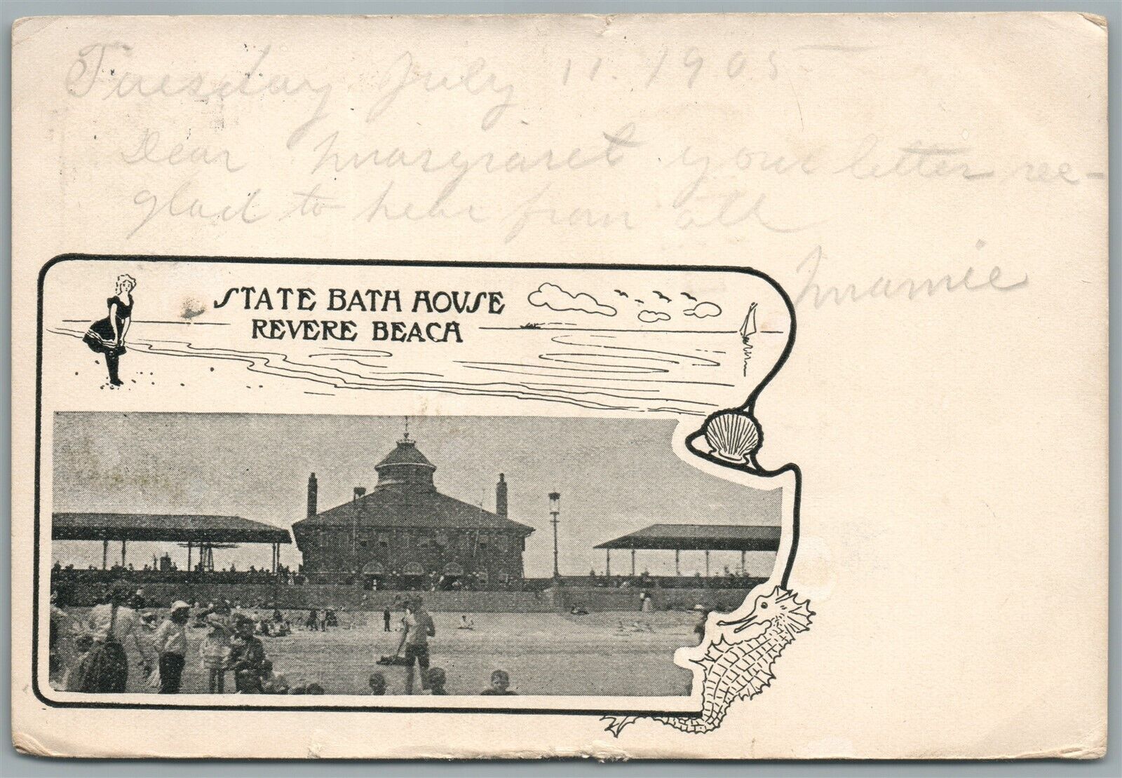 REVERE BEACH MA STATE BATH HOUSE ANTIQUE POSTCARD