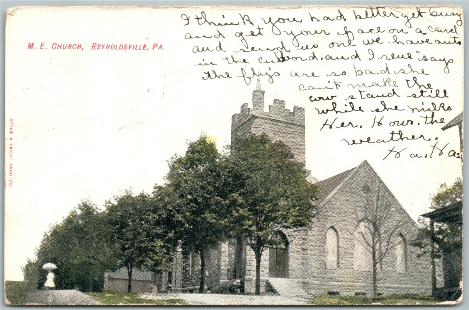 REYNOLDSVILLE PA M.E. CHURCH 1908 ANTIQUE POSTCARD