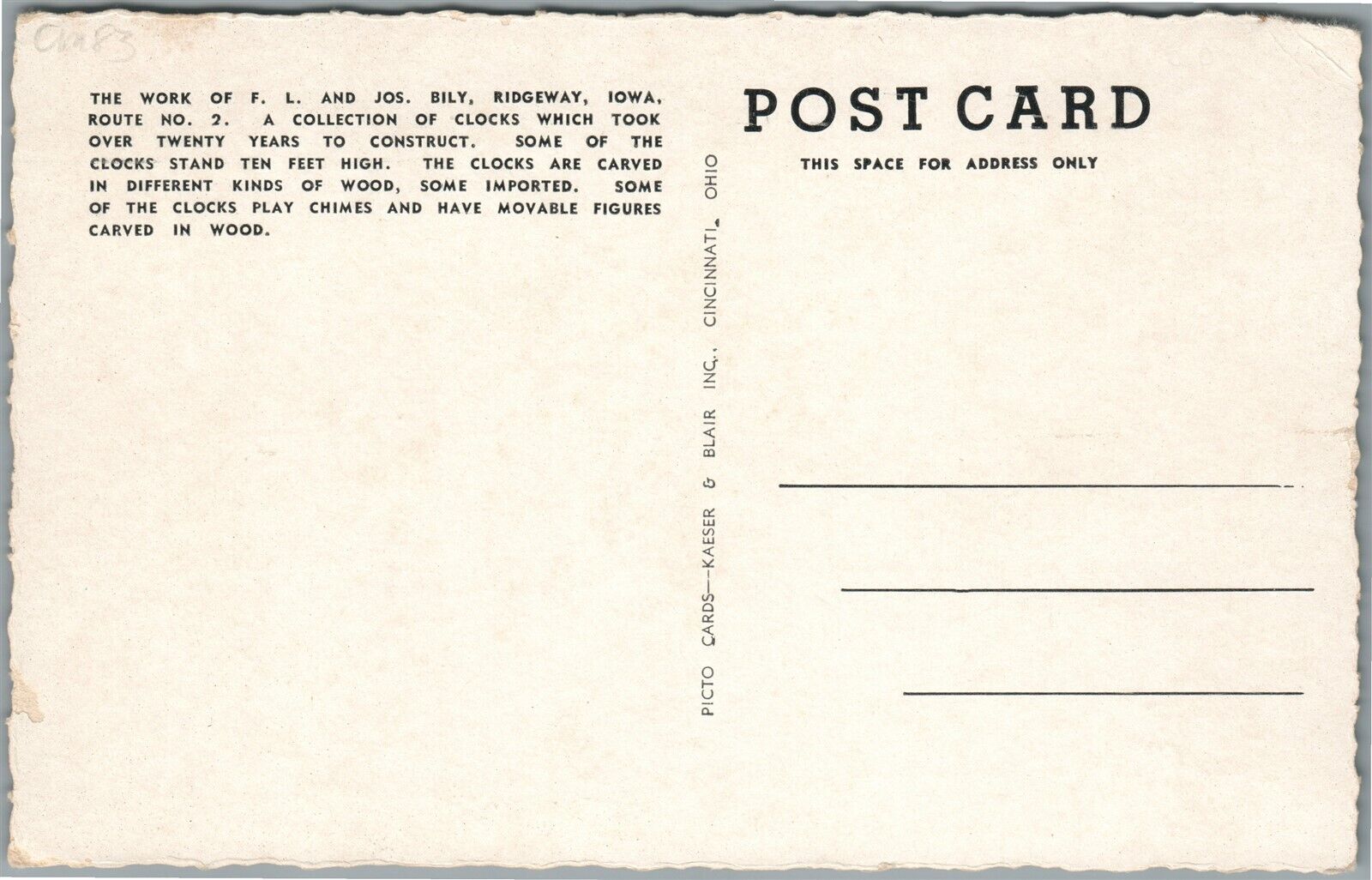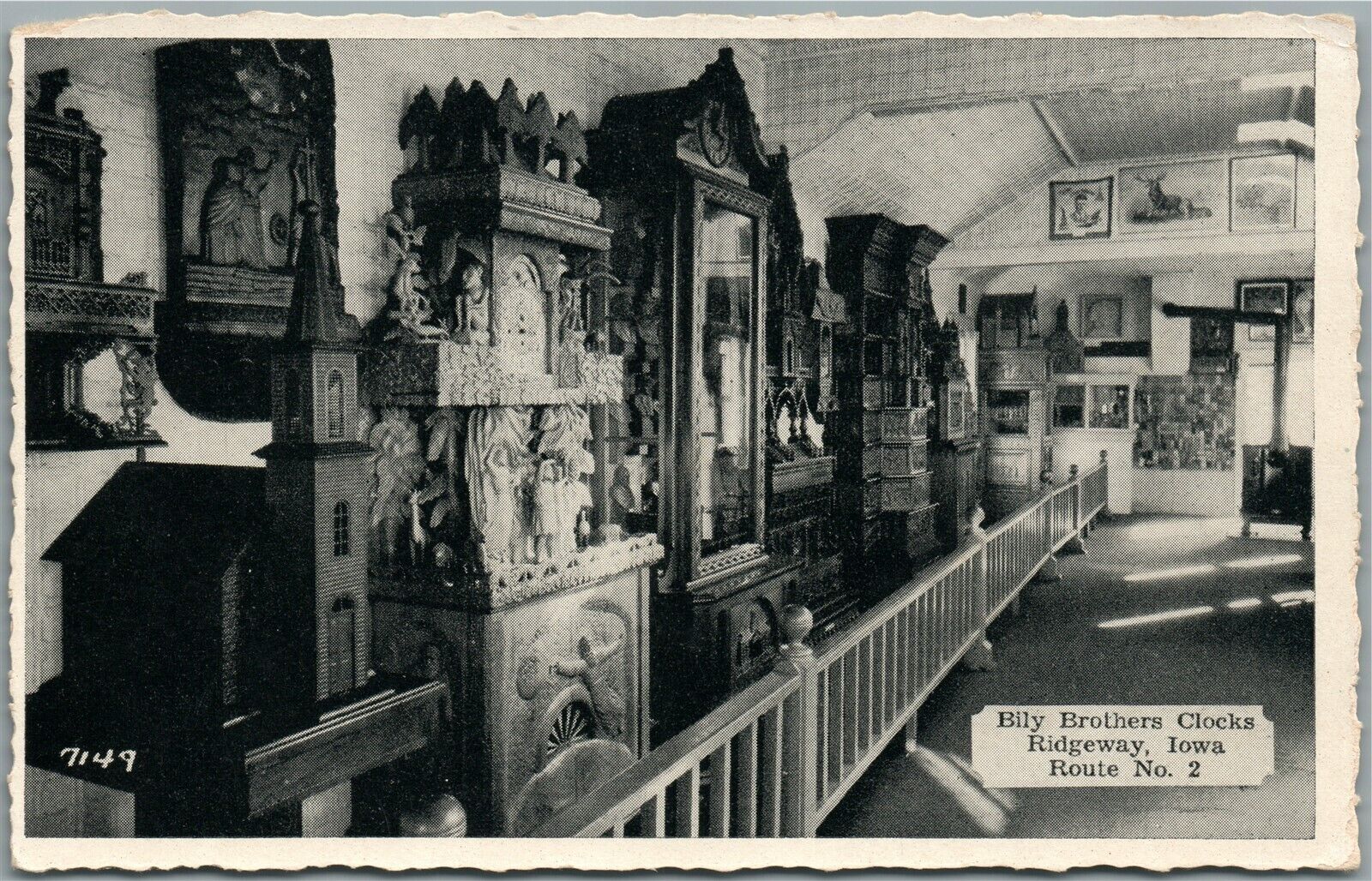 RIDGEWAY IA BILY BROTHERS CLOCKS VINTAGE POSTCARD