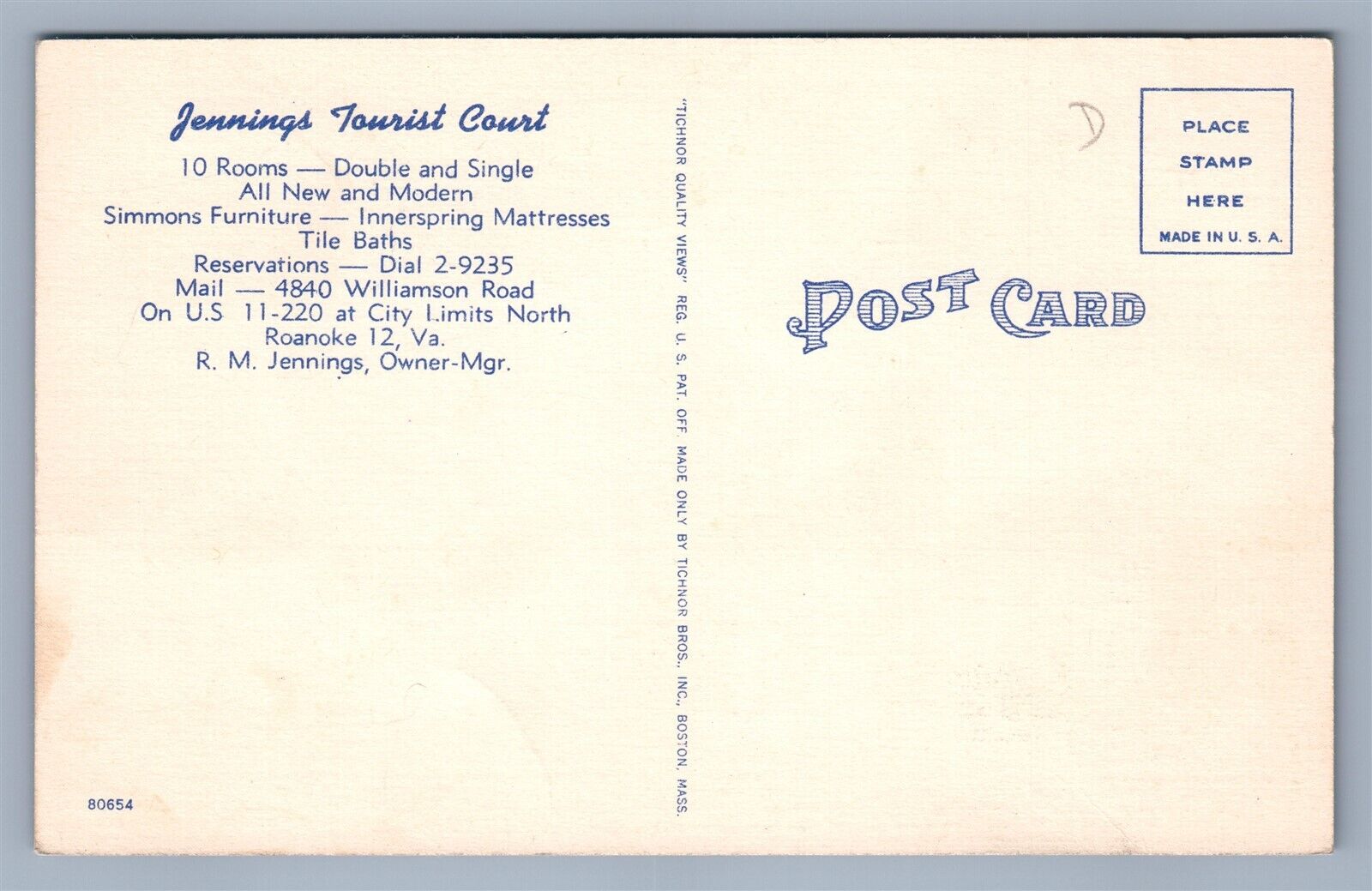 ROANOKE VA ESSO GAS STATION JENNINGS TOURIST COURT VINTAGE POSTCARD