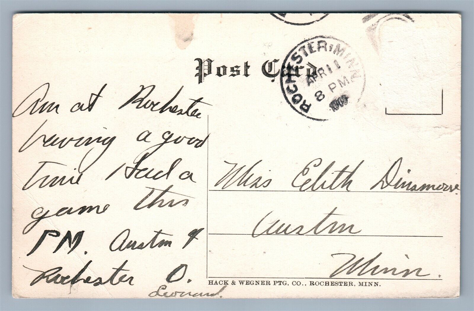 ROCHESTER MN YMCA BUILDING ANTIQUE POSTCARD