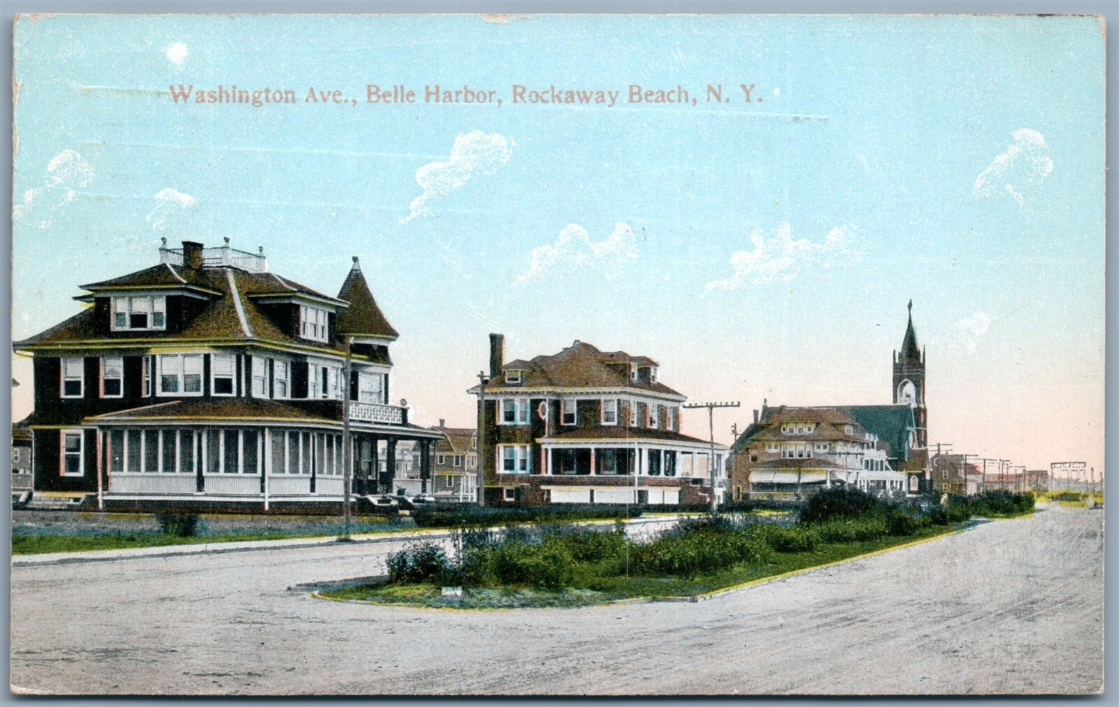 ROCKAWAY BEACH LONG ISLAND NY WASHINGTON AVE. BELLE HARBOR 1911 ANTIQUE POSTCARD
