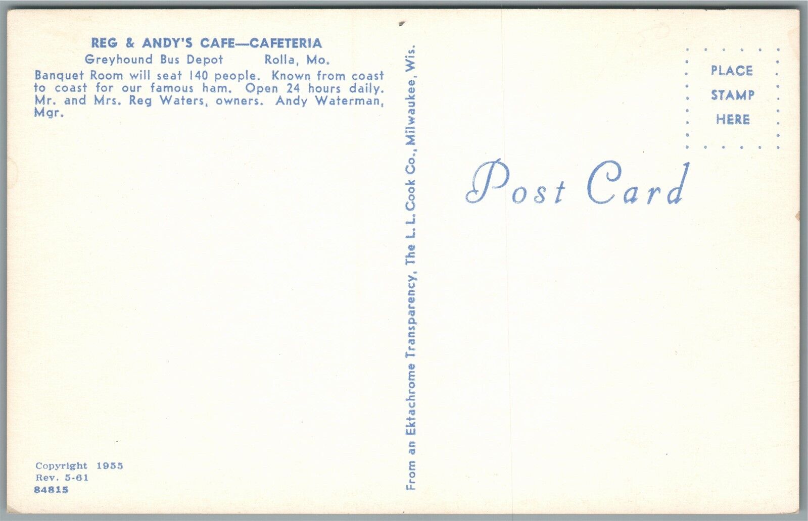 ROLLA MO BUS STATION REG & ANDY'S CAFE VINTAGE POSTCARD