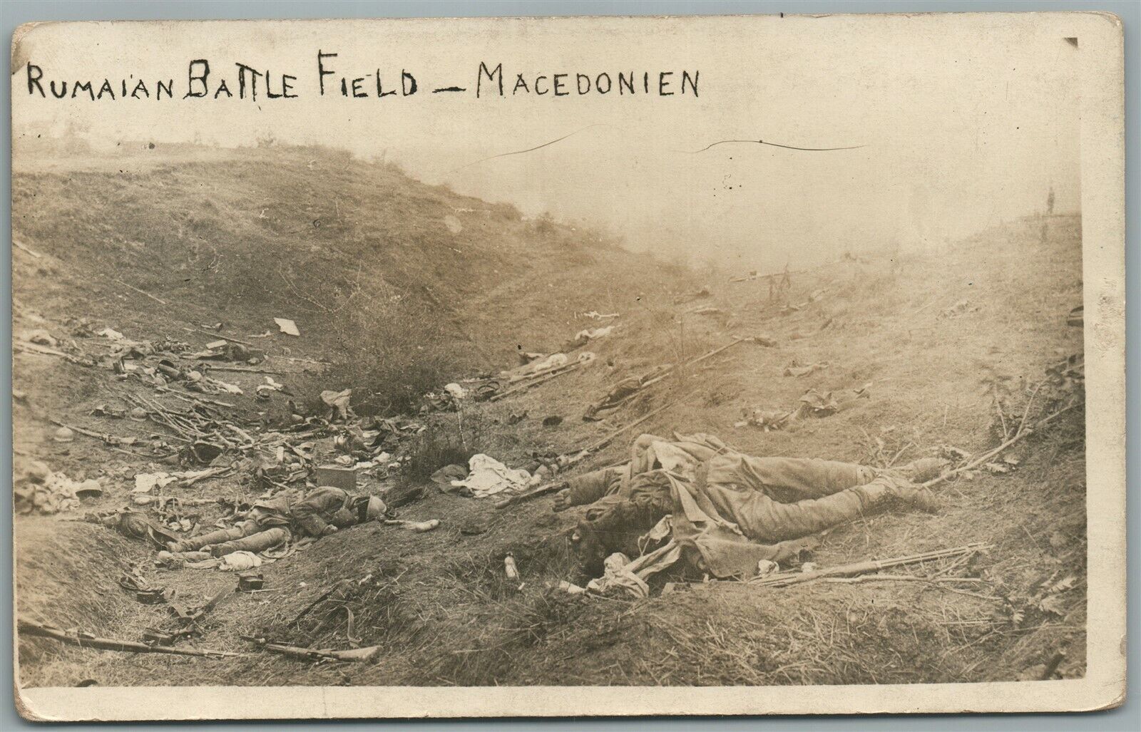 ROMANIAN BATTLE FIELD MACEDONIAN DEAD BODIES ANTIQUE REAL PHOTO POSTCARD RPPC