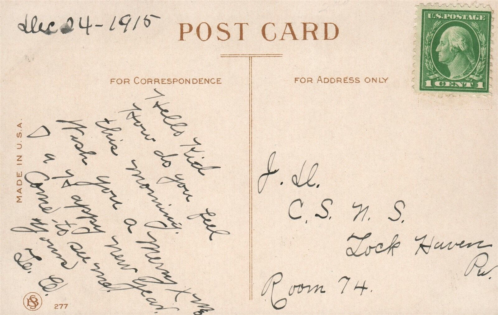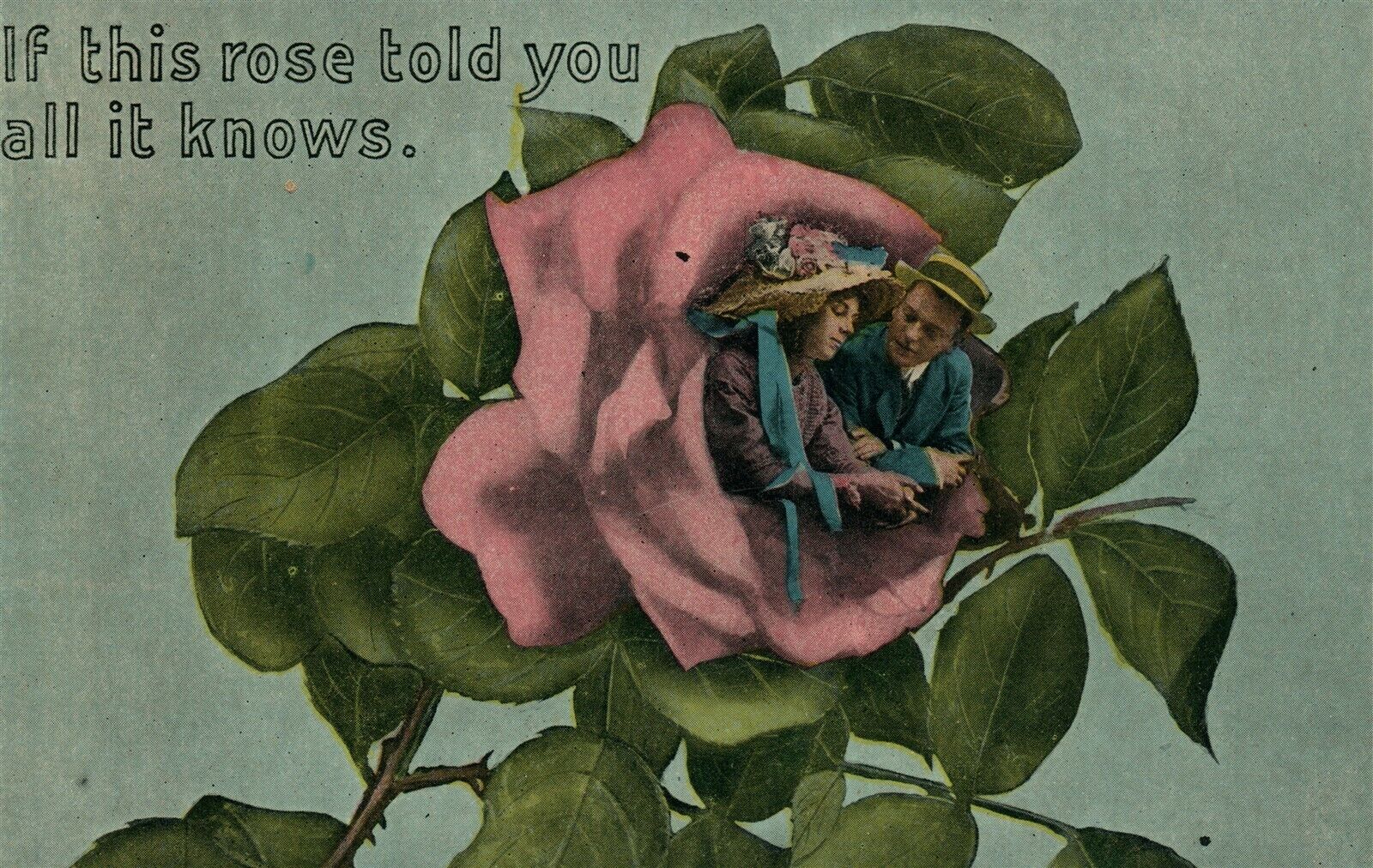 ROMANTIC COUPLE in ROSE FLOWER 1915 EXAGGERATED ANTIQUE POSTCARD