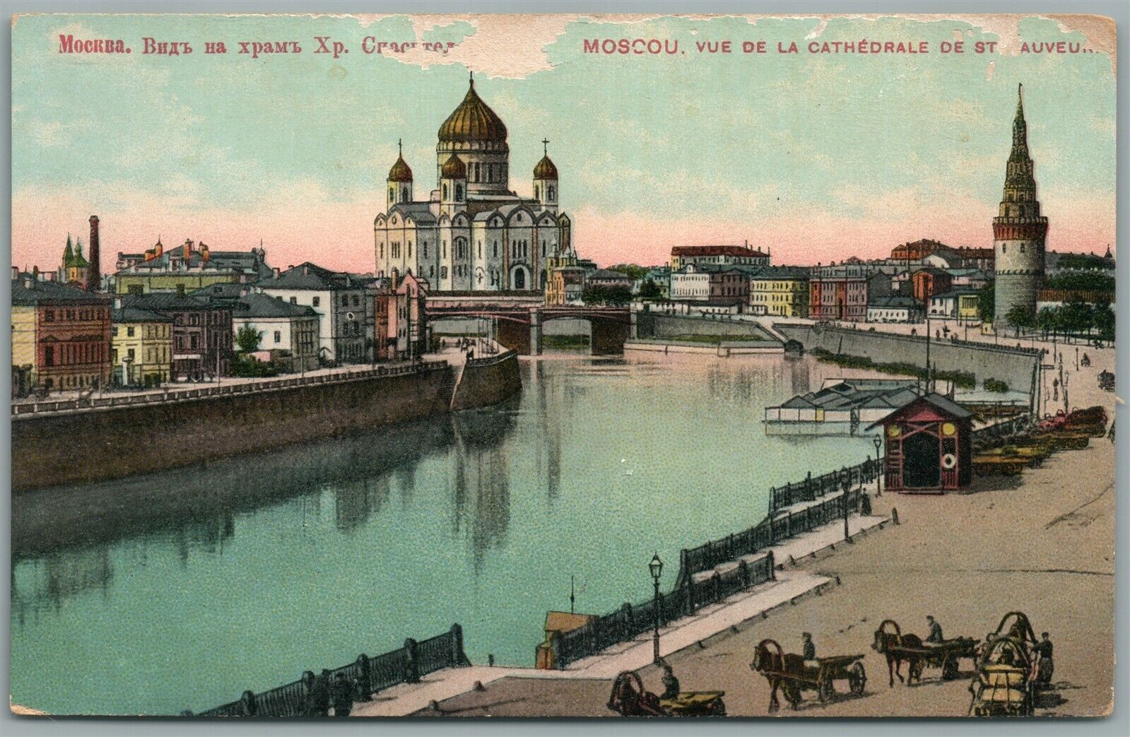 RUSSIA MOSCOW ST.SAVIOR CATHEDRAL VIEW ANTIQUE POSTCARD