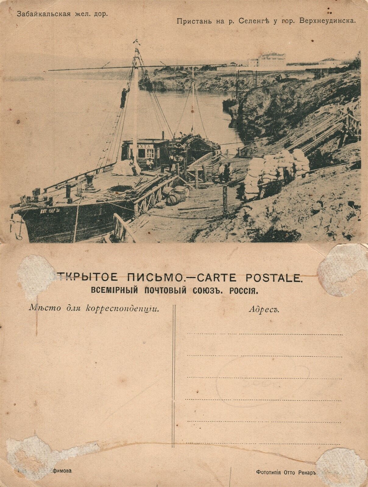 RUSSIA VERHNEUDINSK RIVER SELENGA PIER ANTIQUE POSTCARD ZABAIKALSKAYA RAILROAD