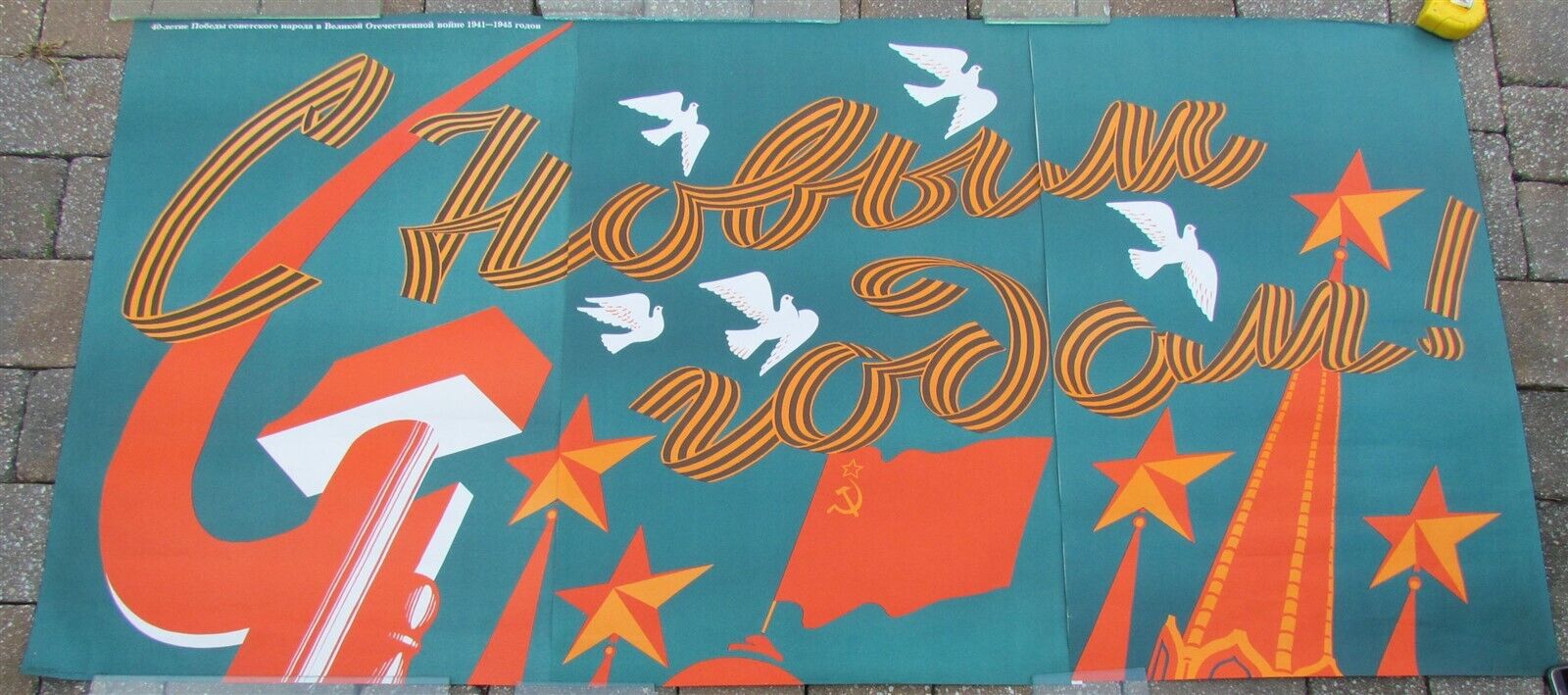 RUSSIAN 1984 TRIPPLE PANEL POSTER PATRIOTIC NEW YEAR vintage 38 x 76"