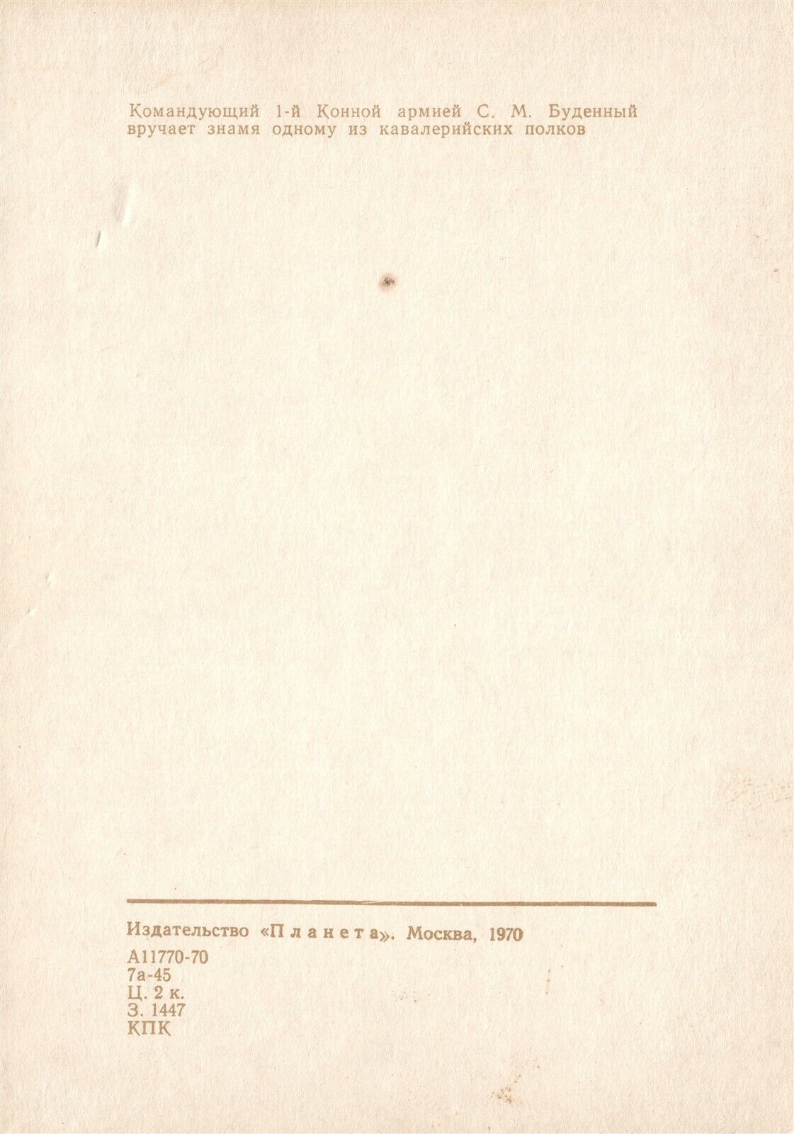 RUSSIAN CAVALRY MARSHAL BUDYONNY w/ FLAG 1970 SOVIET VINTAGE POSTCARD