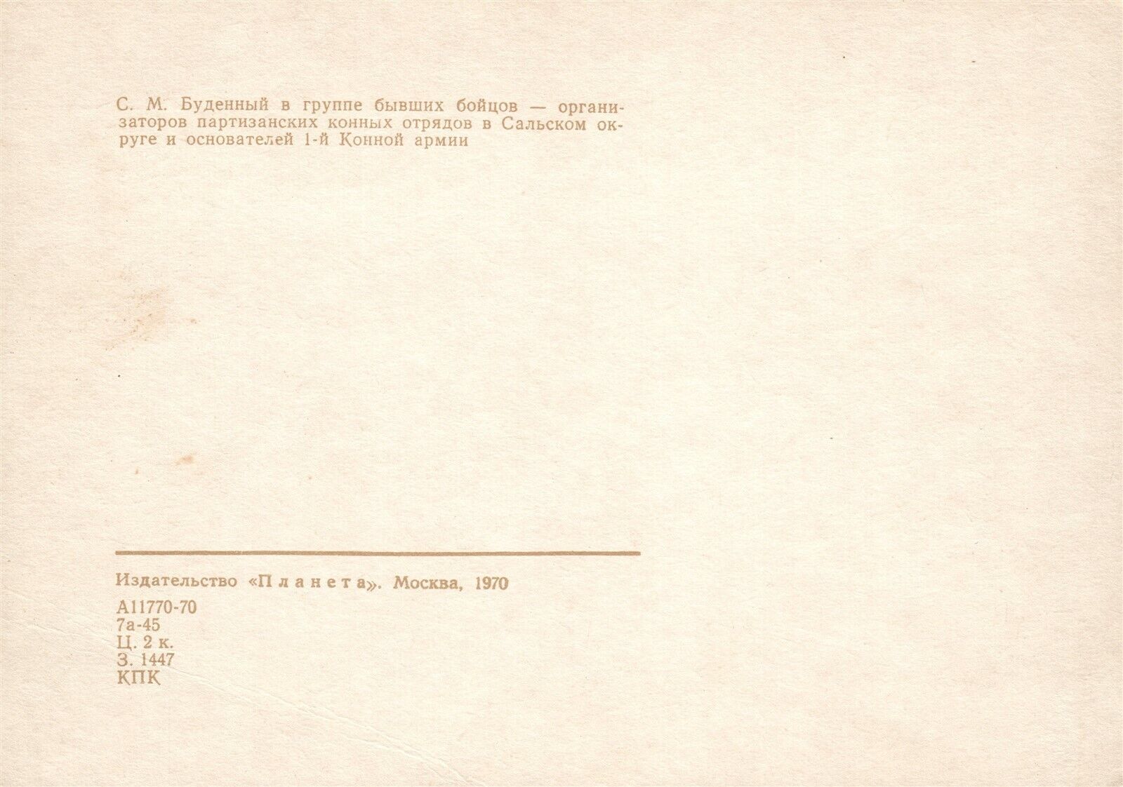 RUSSIAN CAVALRY MARSHAL BUDYONNY w/ PARTISANS 1970 VINTAGE POSTCARD