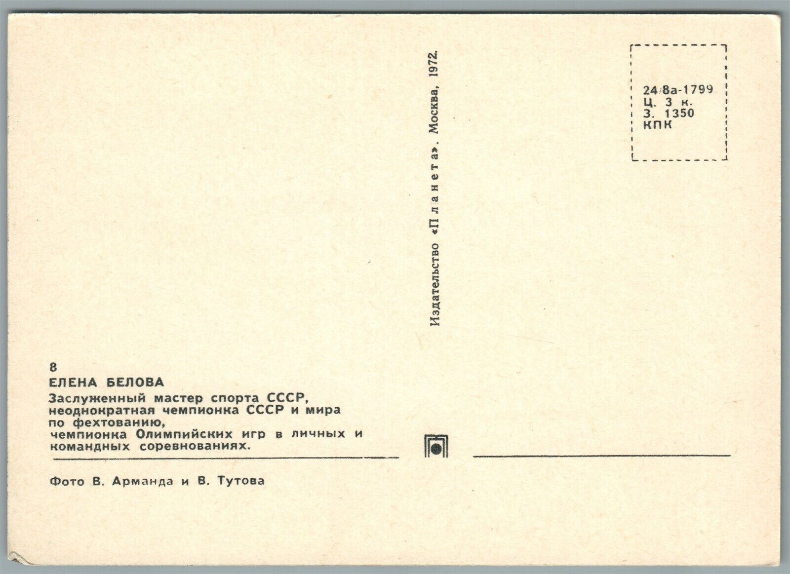 RUSSIAN FENCING CHAMPION ELENA BELOVA VINTAGE POSTCARD