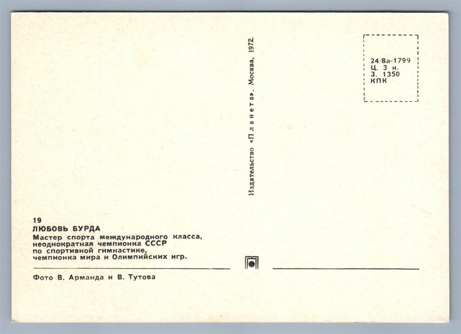 RUSSIAN GYMNASTICS OLYMPIC CHAMPION 1972 VINTAGE POSTCARD