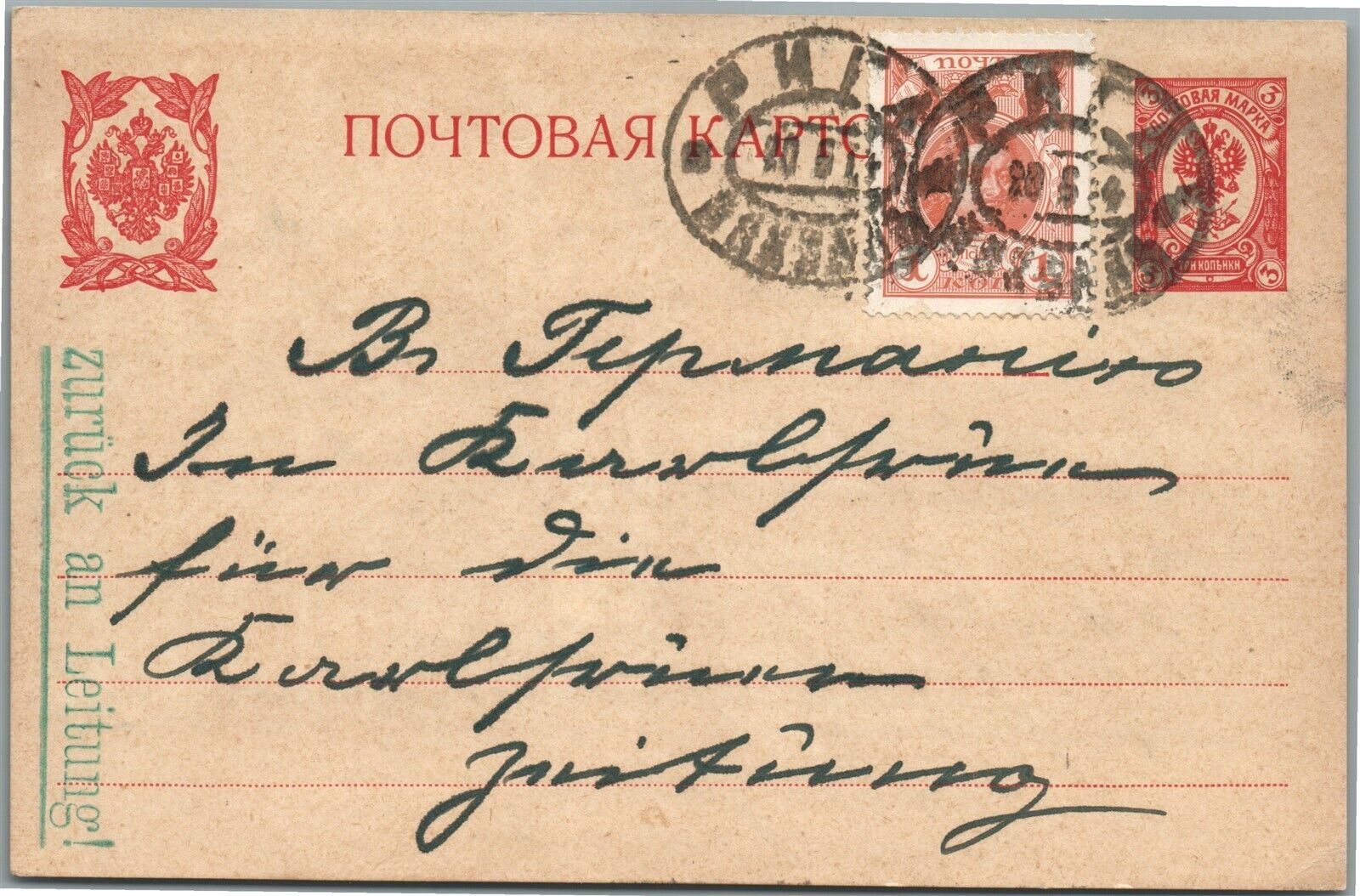 RUSSIAN IMPERIAL MAIL WWI ERA 1914 ANTIQUE POSTCARD w/ STAMPS