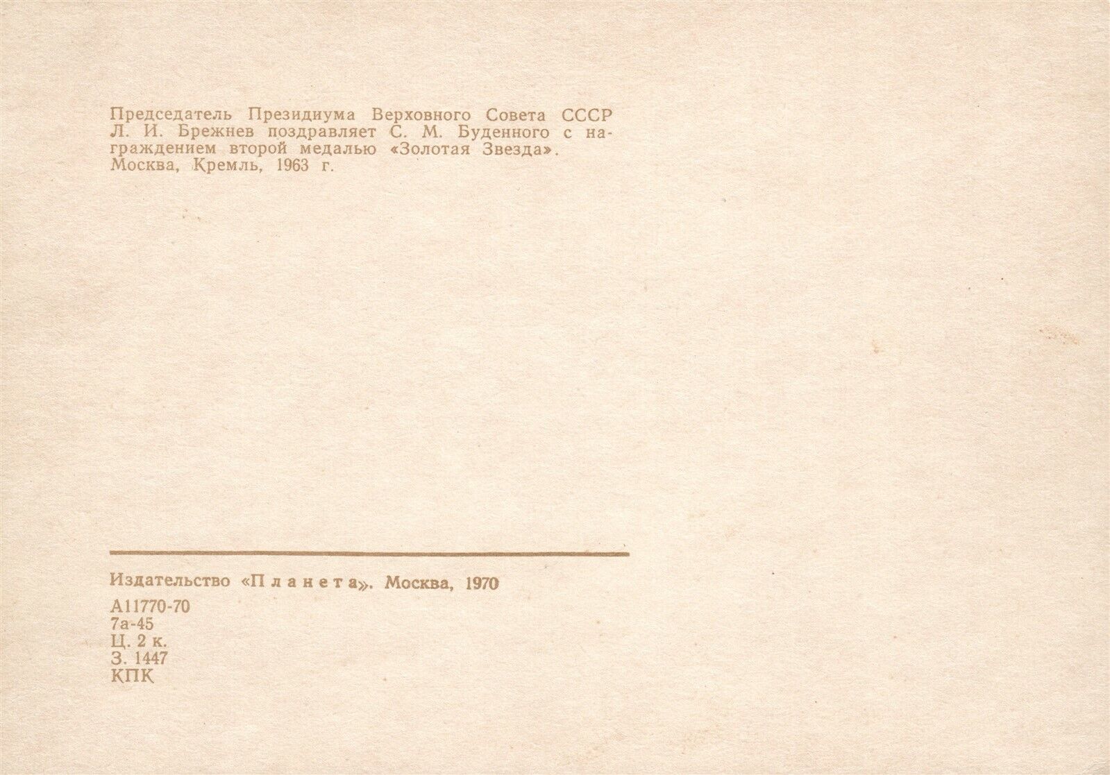 RUSSIAN LEADER BREZHNEV AWARDING MARSHAL BUDYONNY 1970 VINTAGE POSTCARD