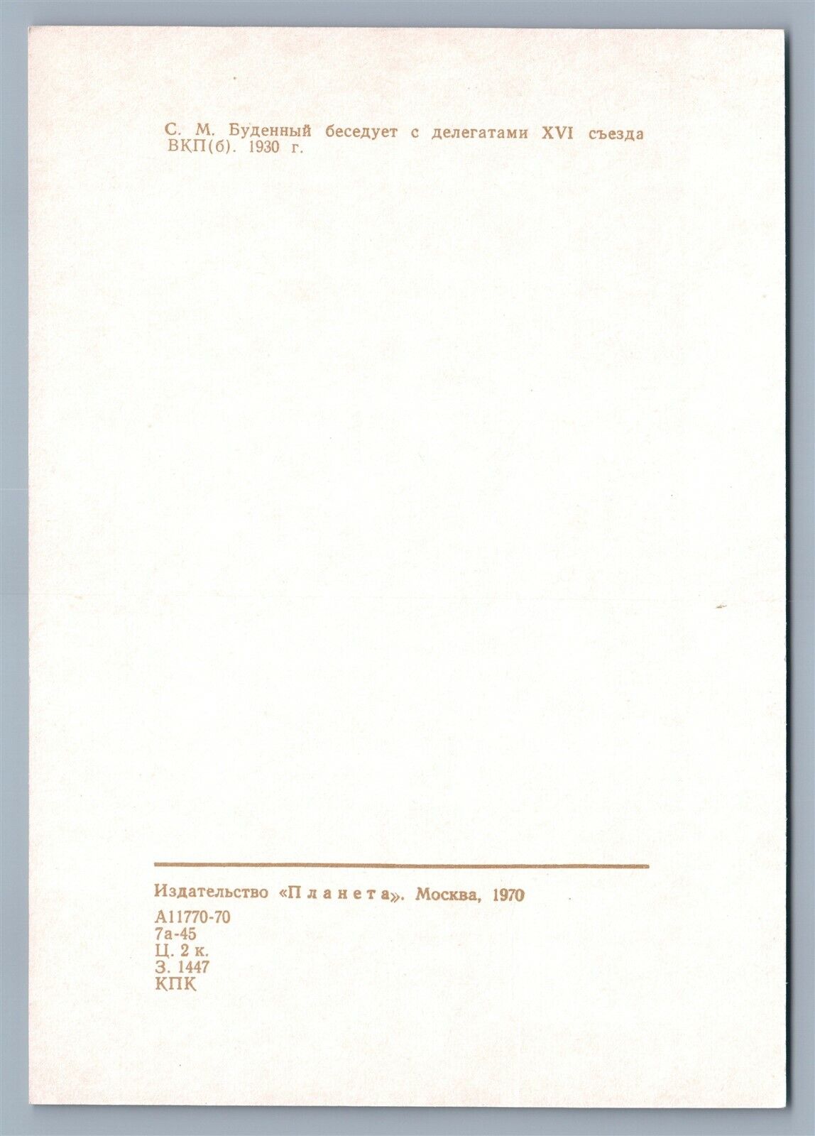 RUSSIAN MARSHAL SEMEN BUDENNII 1970 VINTAGE POSTCARD