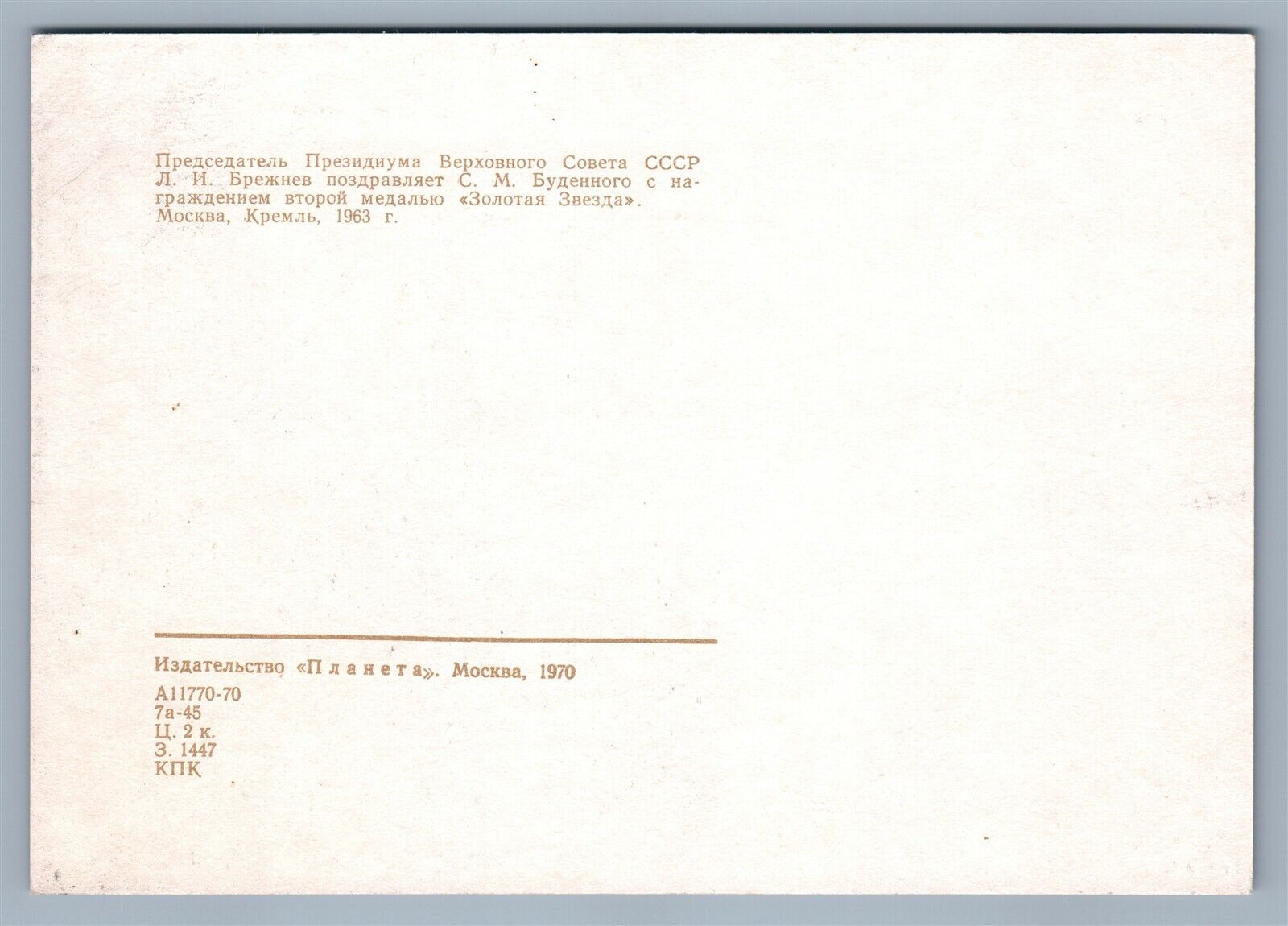RUSSIAN MILITARY LEADER MARSHAL BUDENNII & BREZHNEV VINTAGE POSTCARD