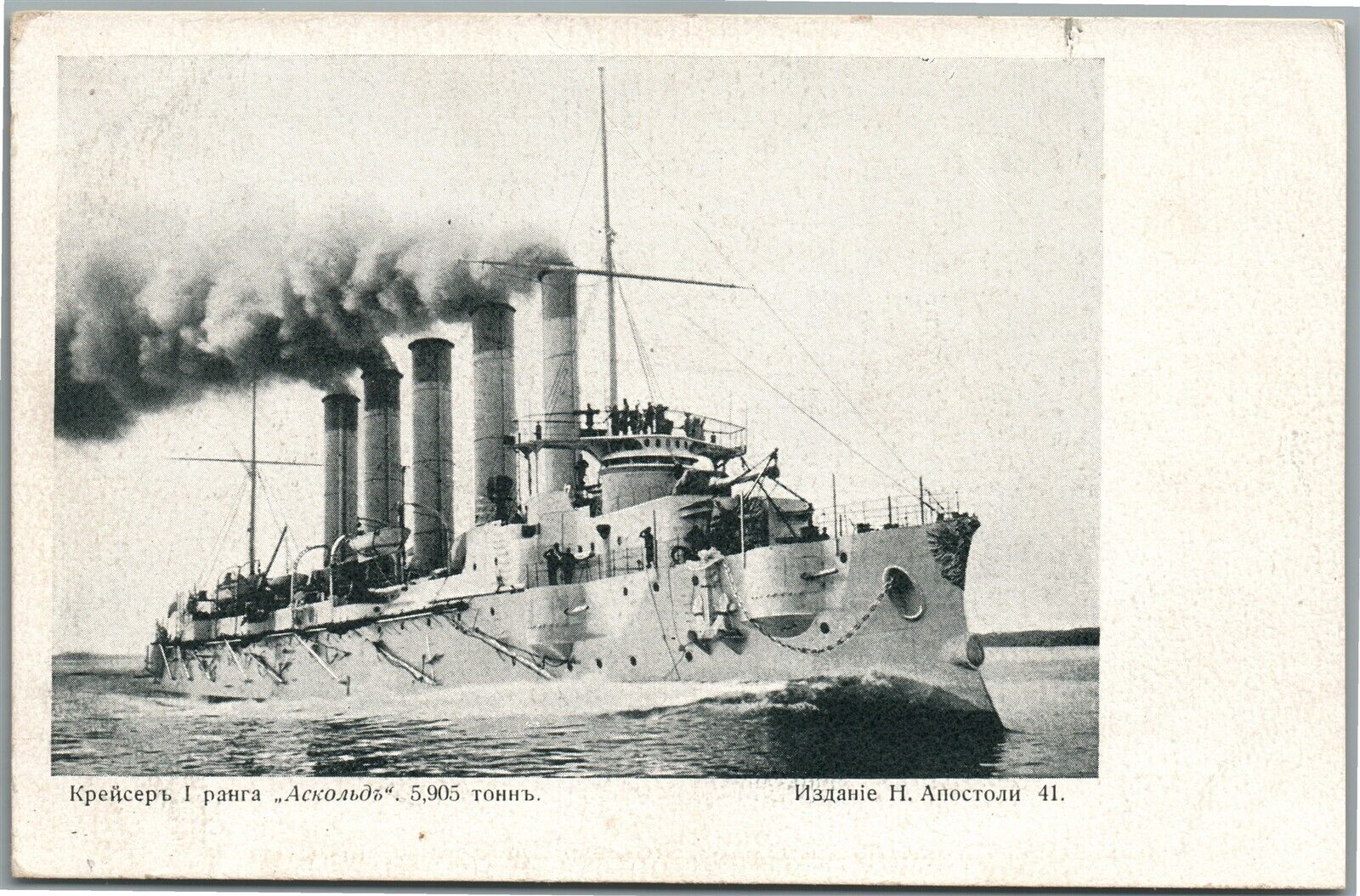 RUSSIAN MILITARY SHIP CRUISER ASKOLD ANTIQUE POSTCARD