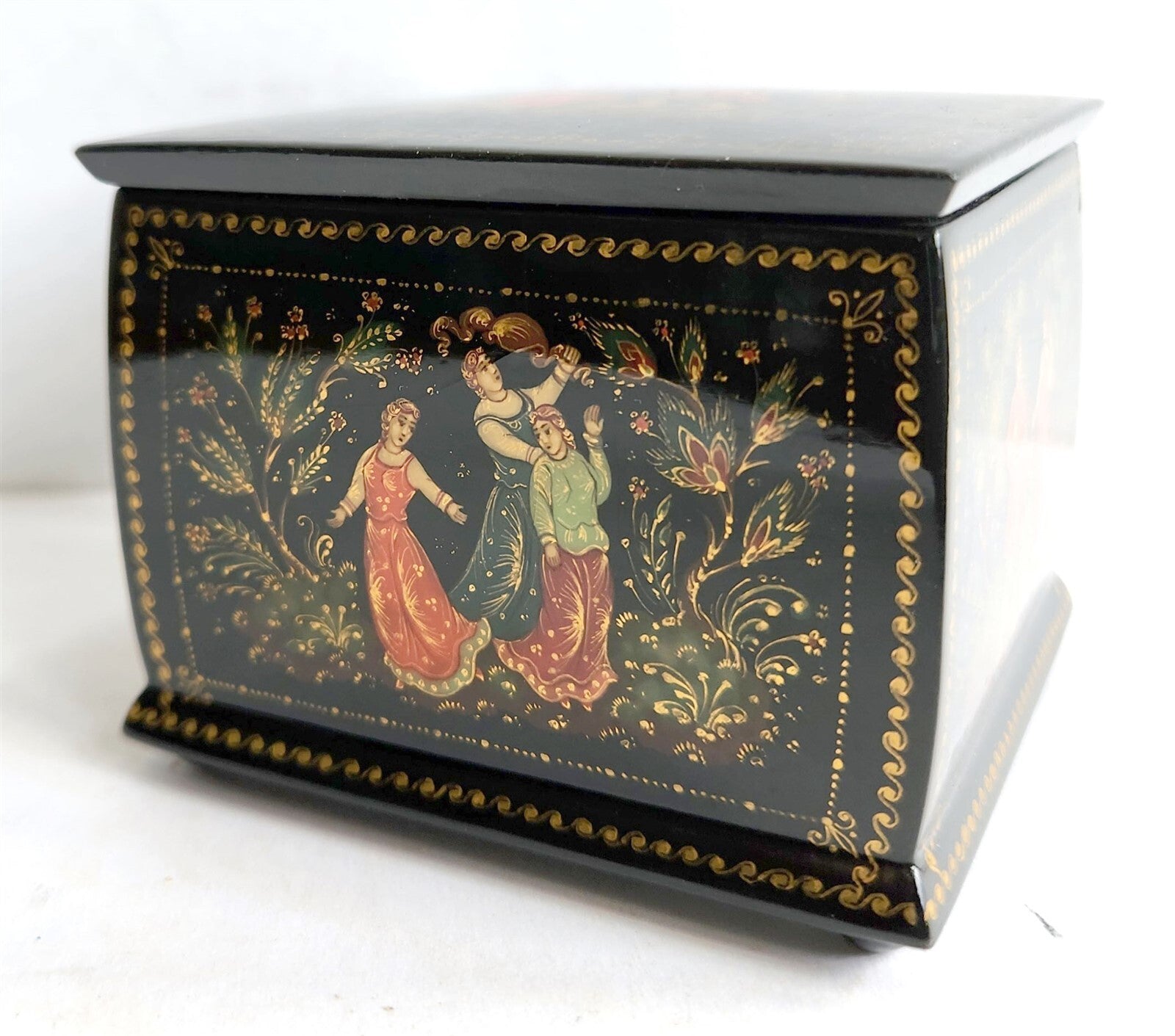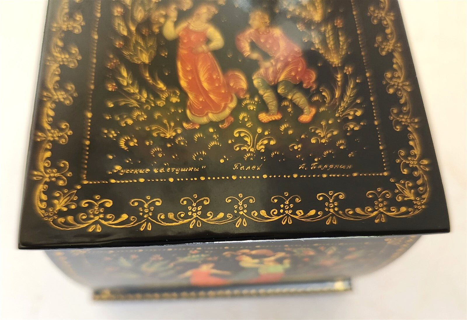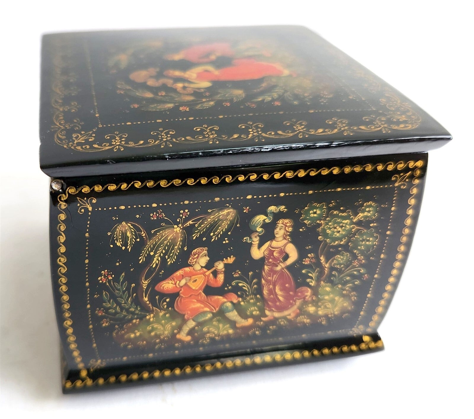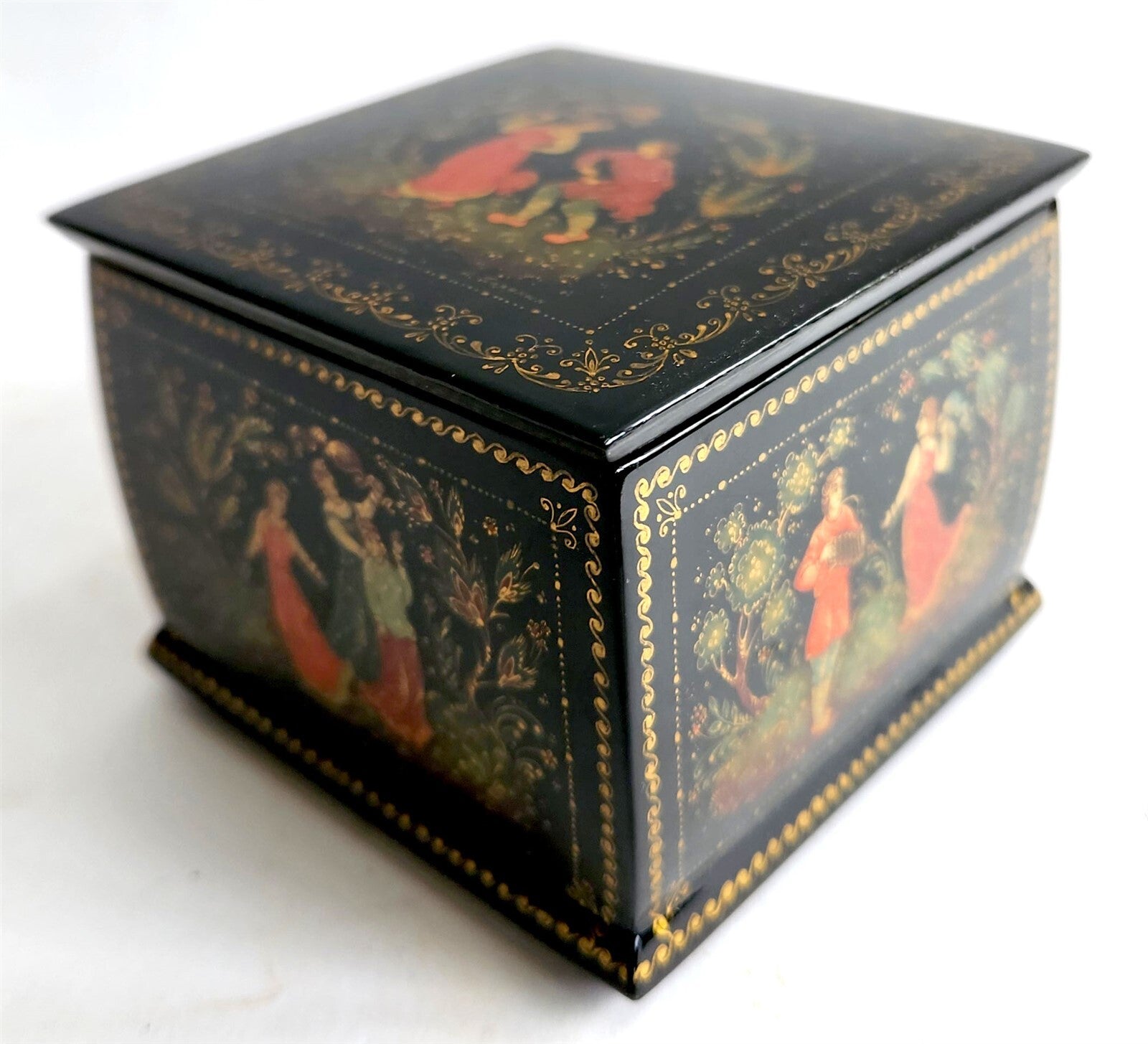 RUSSIAN PALEKH SCHOOL 5 SIDED VINTAGE LACQUER BOX ARTIST SIGNED